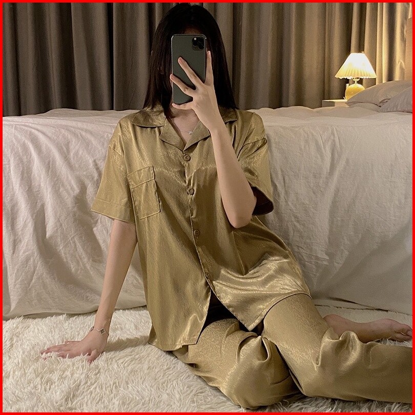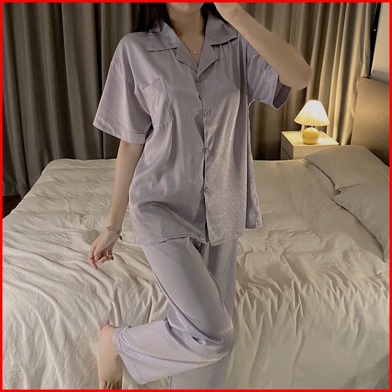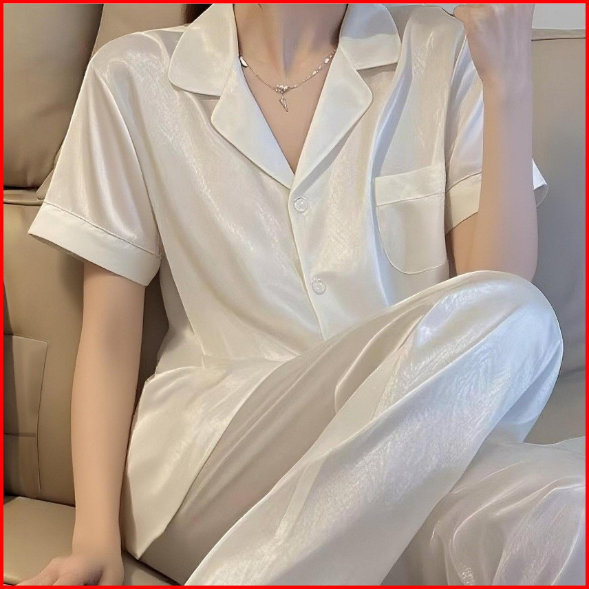 2025 Koleksi Pakaian Tidur Wanita Berbahan Satin Halus Dengan Motif Garis-garis Monokrom Set Pakaian Rumah Berkerah Pend