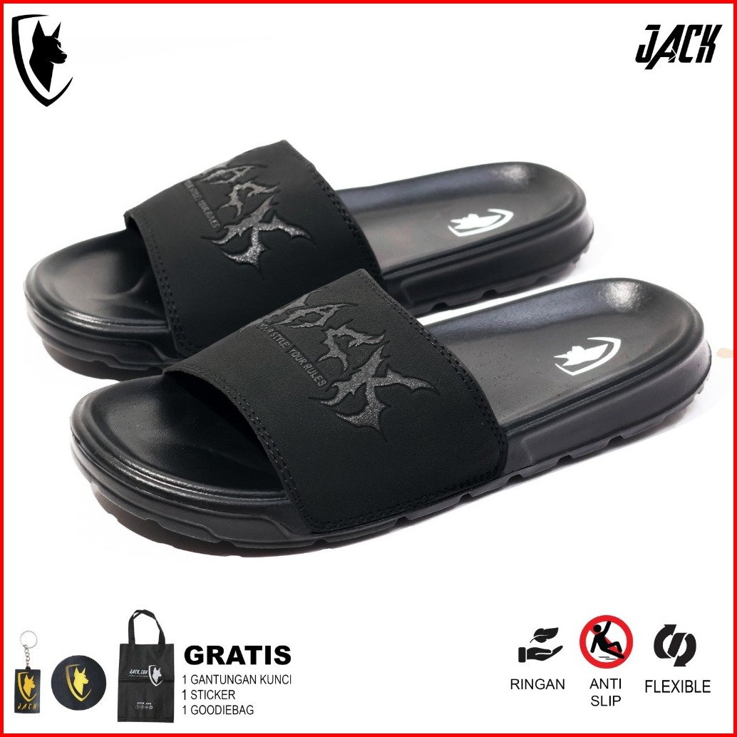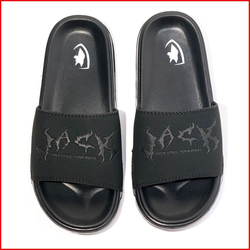 Jack Idn Sandal Slide Pria Sendal Slop Flip Flop Evil Black Embossed