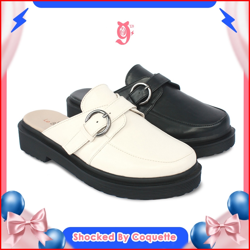 Le Bianca Asa 15-01 Sepatu Sendal Wanita Wedges Slip On Hitam Dan Ivory Outfit Kantor Simple