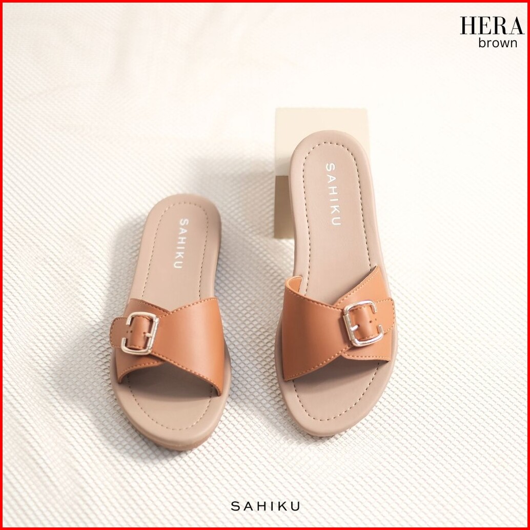 Sahiku - Hera Sandal Flat Casual Wanita Sendal Teplek Slop Slip On Santai Ringan Empuk Anti Slip