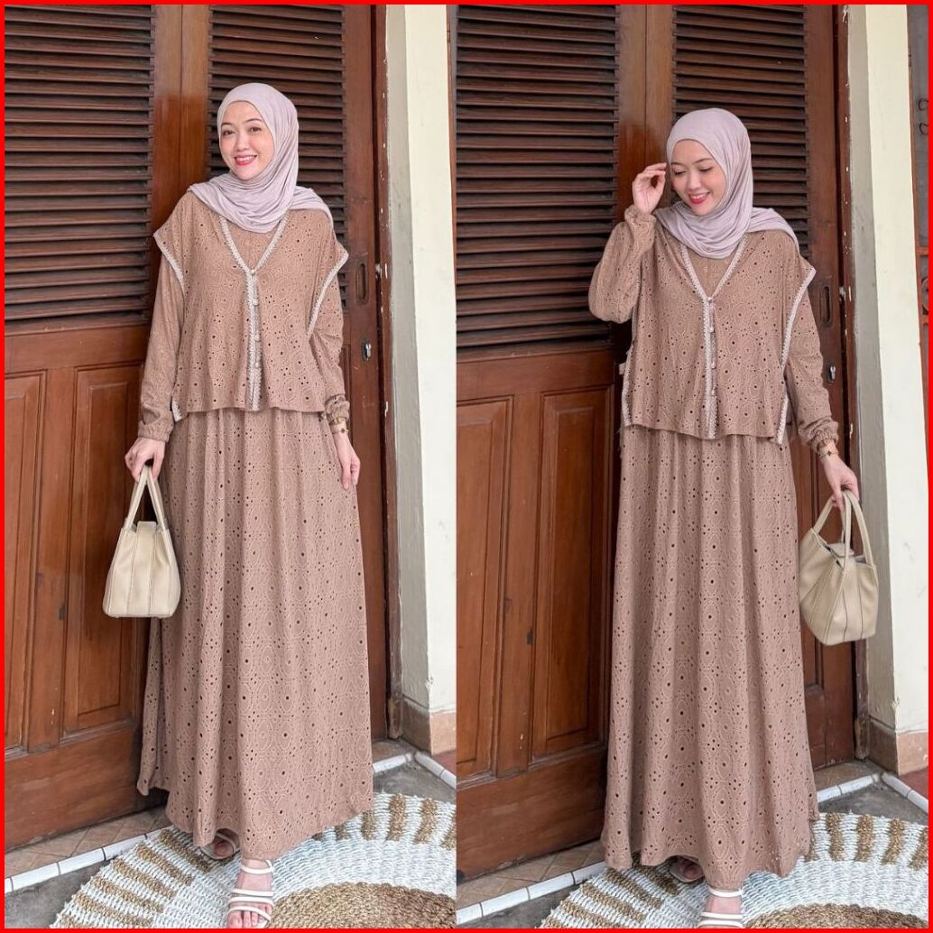 Joley Cloth- Dafina 2in1 Gamis Outer Outfit Simple Lepas Pasang Kekinian Elegant Lepas Pasang Terbaru Dress Panjang Wani