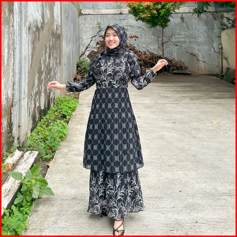 Joley Cloth - Seragam Keluarga Bella Set Kerudung Dress Luxury Ceruti Motif Baby Doll Diamond Armani Baju Lebaran Kondan