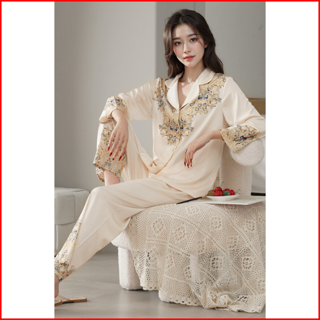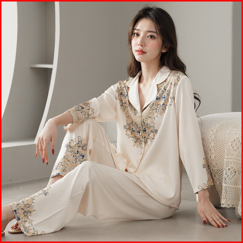 Piyama Wanita Cetak Mewah Mewah Baru Lengan Panjang Lengan Panjang