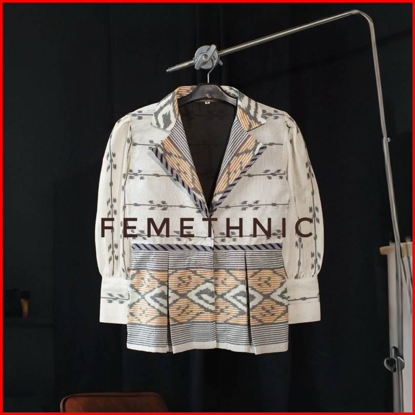 Blazer Wanita Outer Tenun Etnik Elegan Baju Kantor Baju Tenun Jepara Bl20