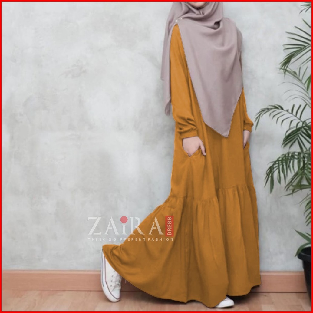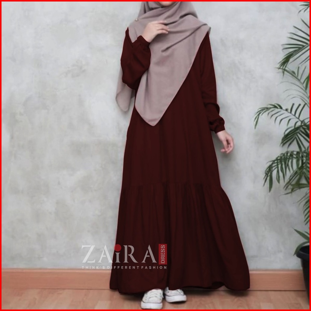 Zaira Dress Gamis Tunik Serut Tali Pingga Lengan Karet Basic Abaya Polos Wanita Lengan Karet Ukuran S M L Xl Xxl