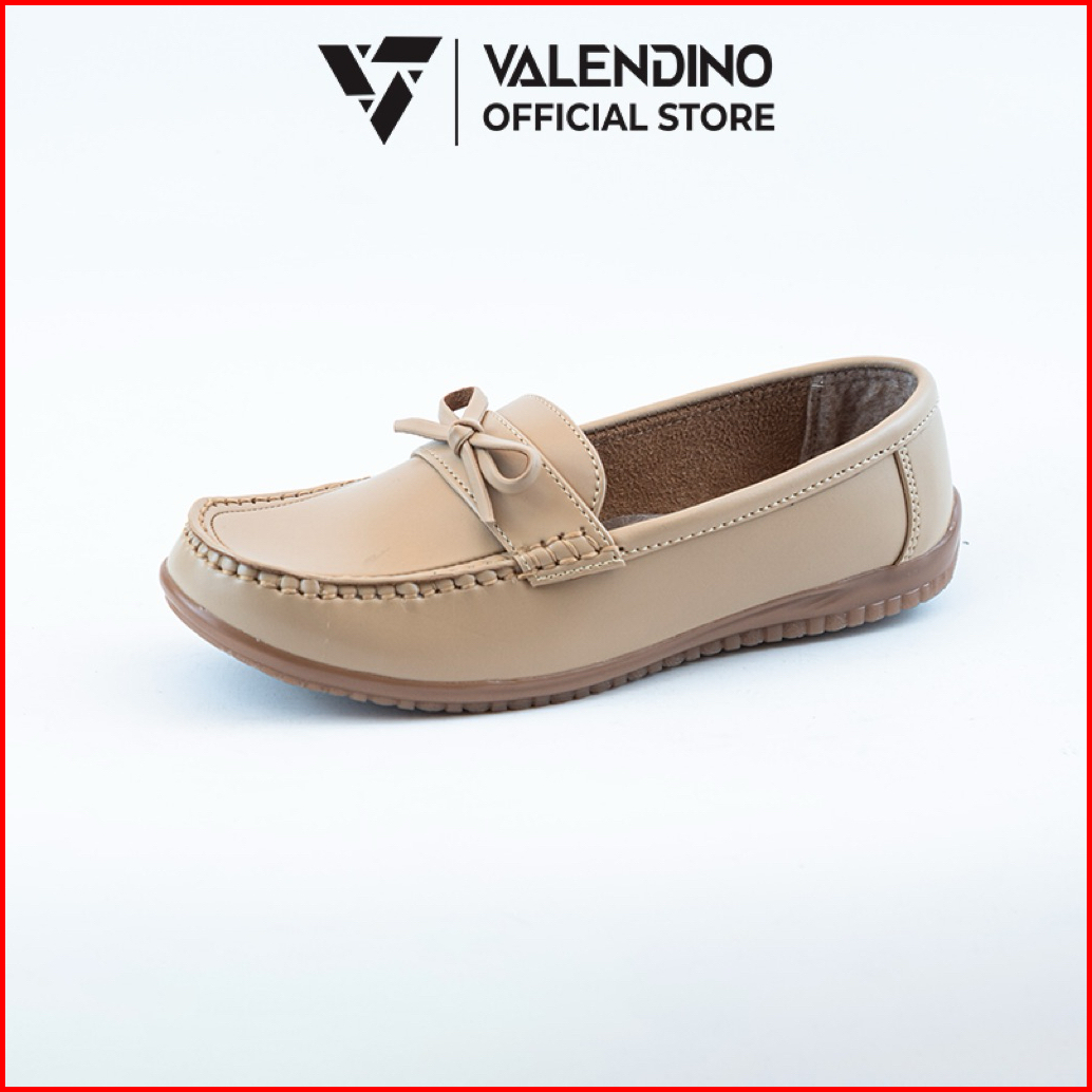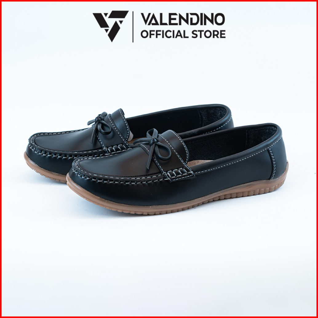 Valendino Flatshoes Wanita Motif Pita Casual Warna Hitam Putih Cream Ivory Coklat Sepatu Cewek Platform Perawat Bidan Gu