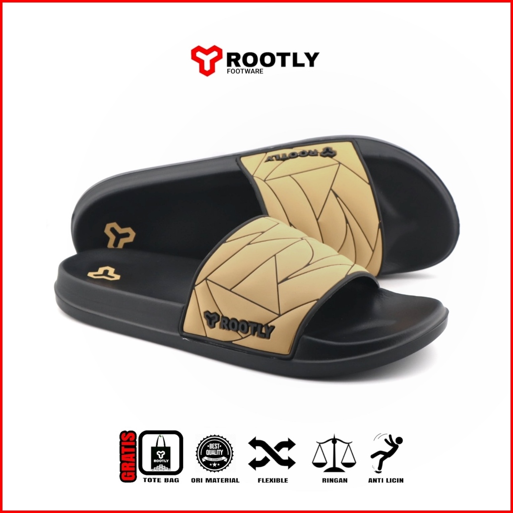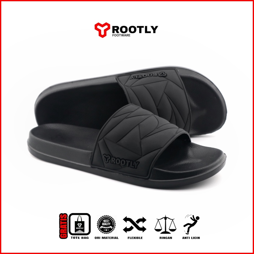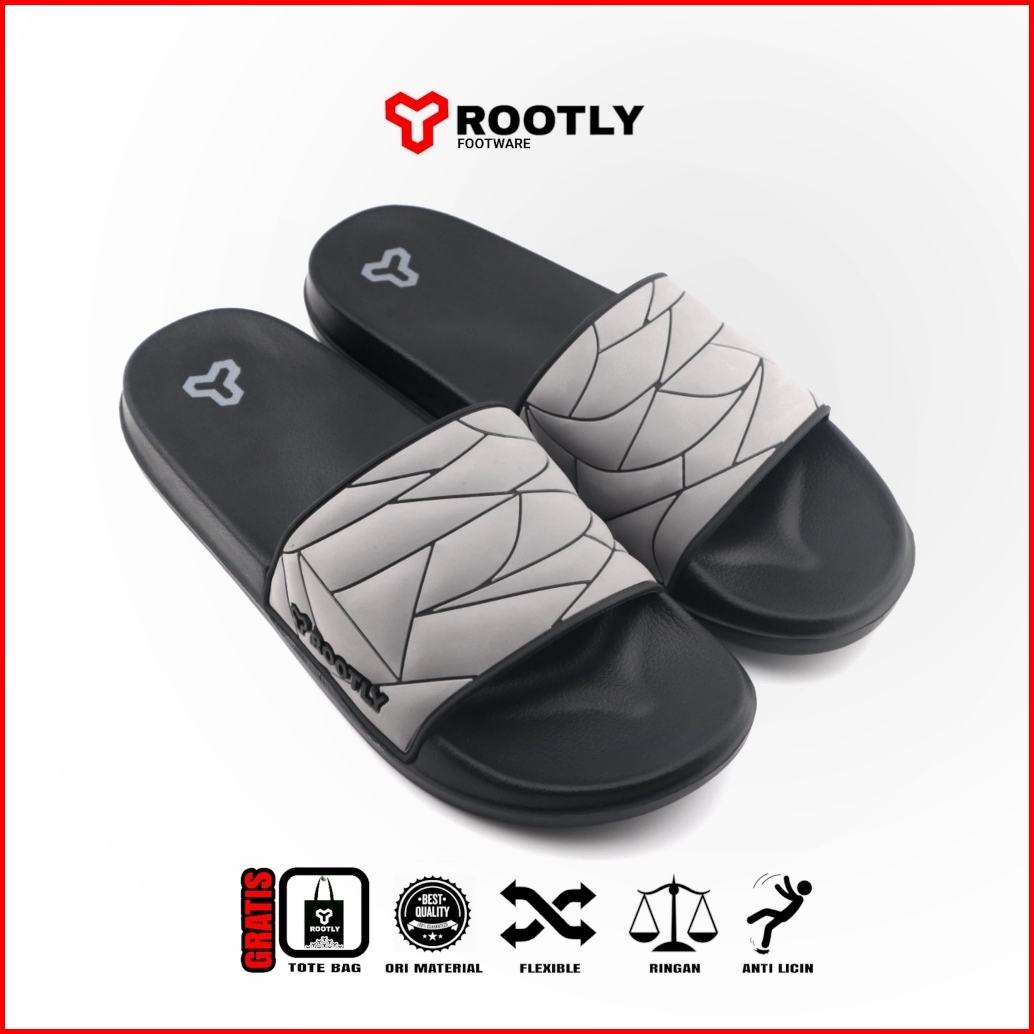 Rootly - Sandal Pria Slide Full Karet Ringan Rush Abu