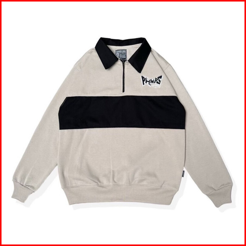 Sweater Rugby Vintage Crem Strip Hitam Sweater Pria Wanita