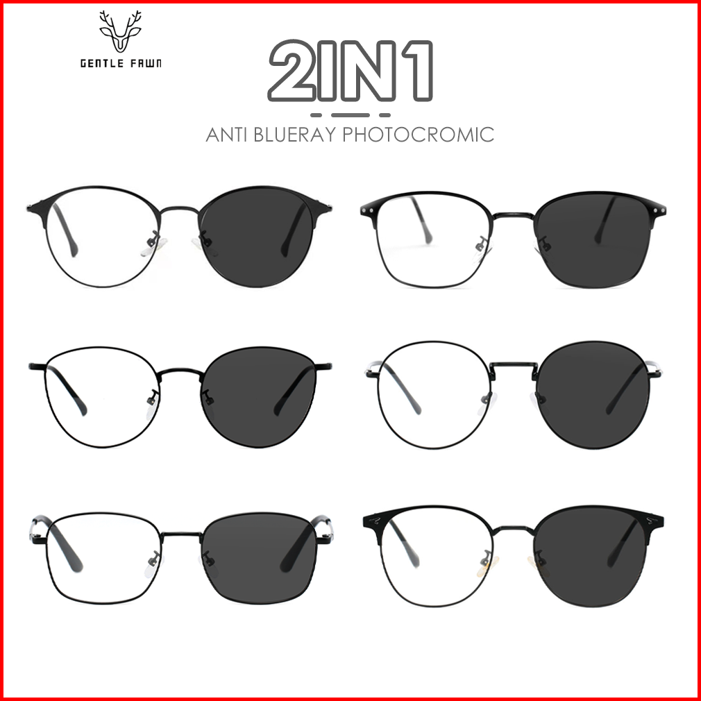 Gentle Fawn Kacamata Antiradiasi Blueray Photocromic Anti Uv 2in1 Fashion Pria Wanita Style Kotak Oval Bulat Simple Kere