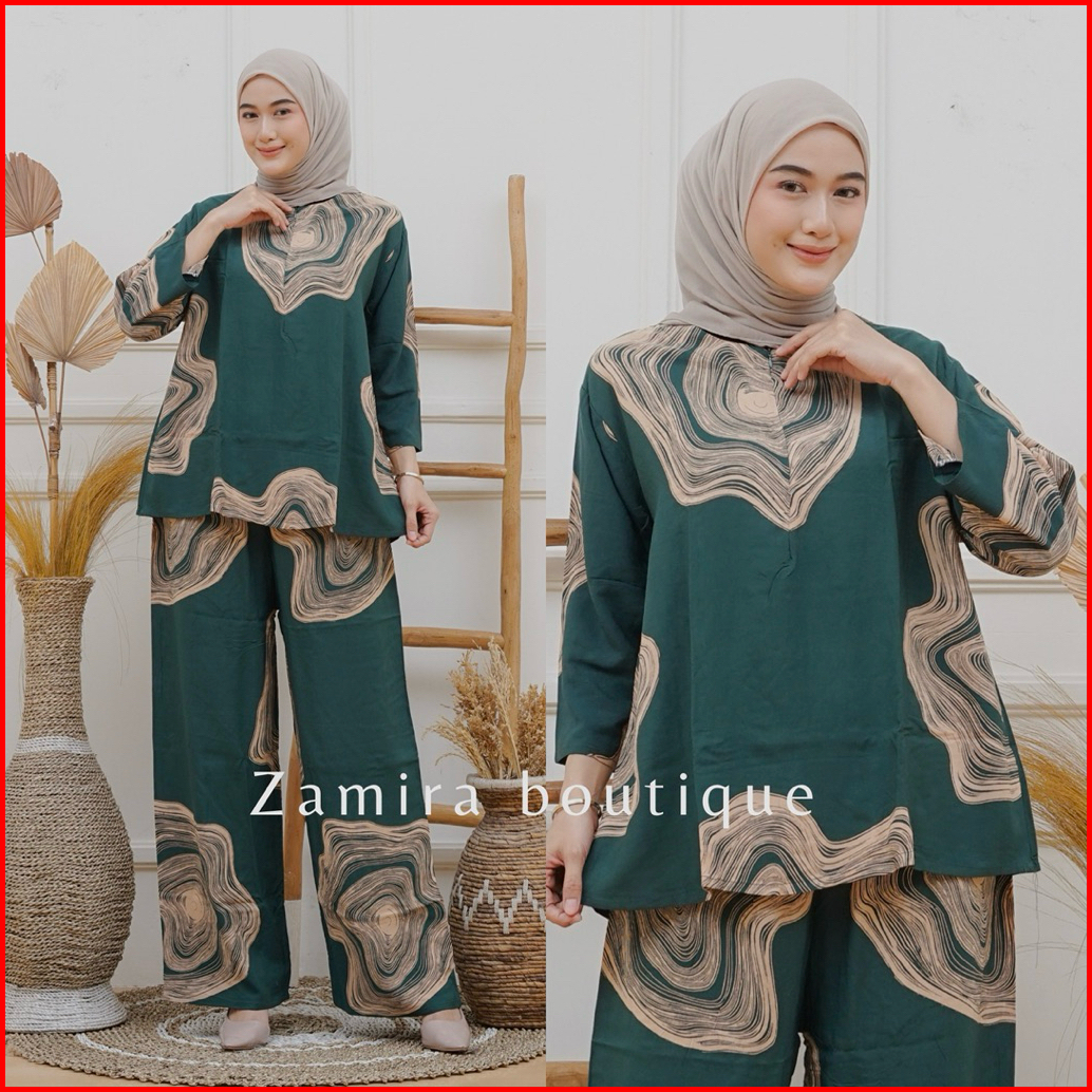 Zamira Boutique One Set Wanita Rayon Busui Resleting Depan Setelan Wanita Kekinian Stelan Wanita Terbaru Setelan Pakaian