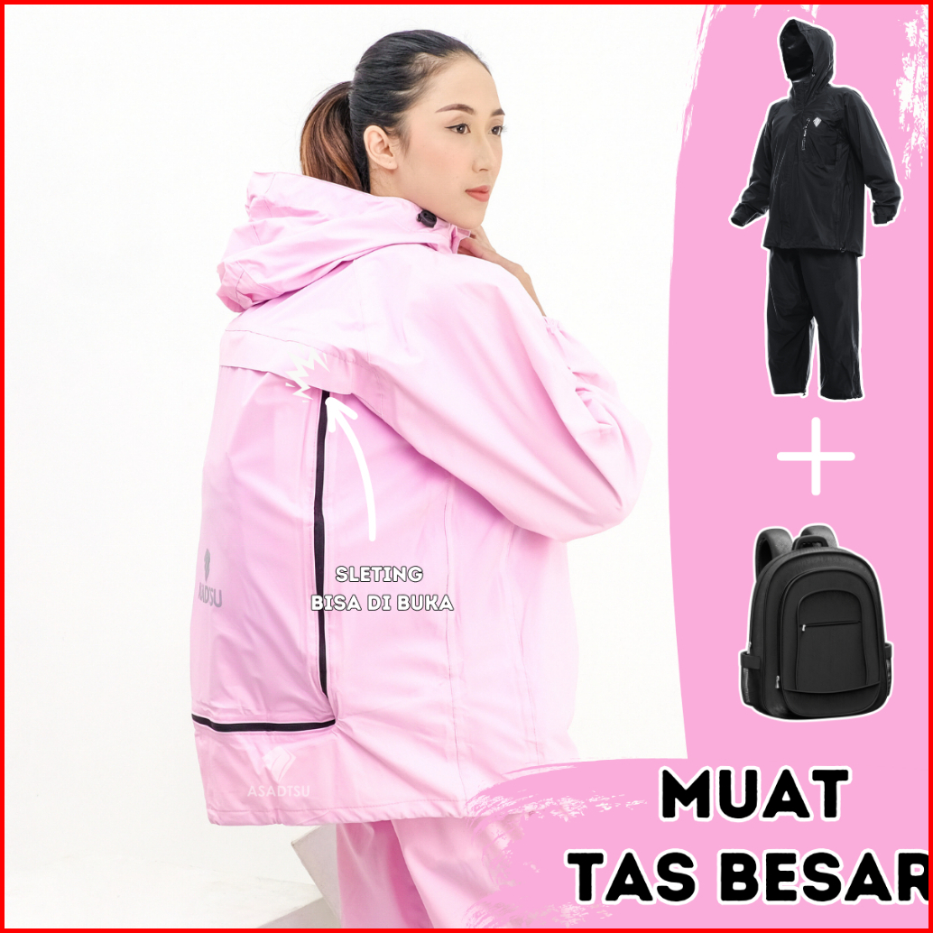 Asadtsu Pink Jas Hujan Ransel Backpack Besar Setelan Dewasa Pria Wanita