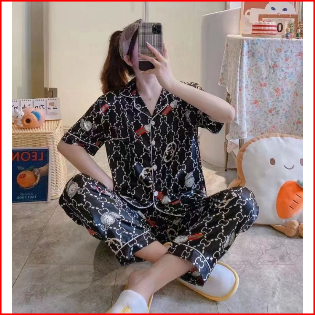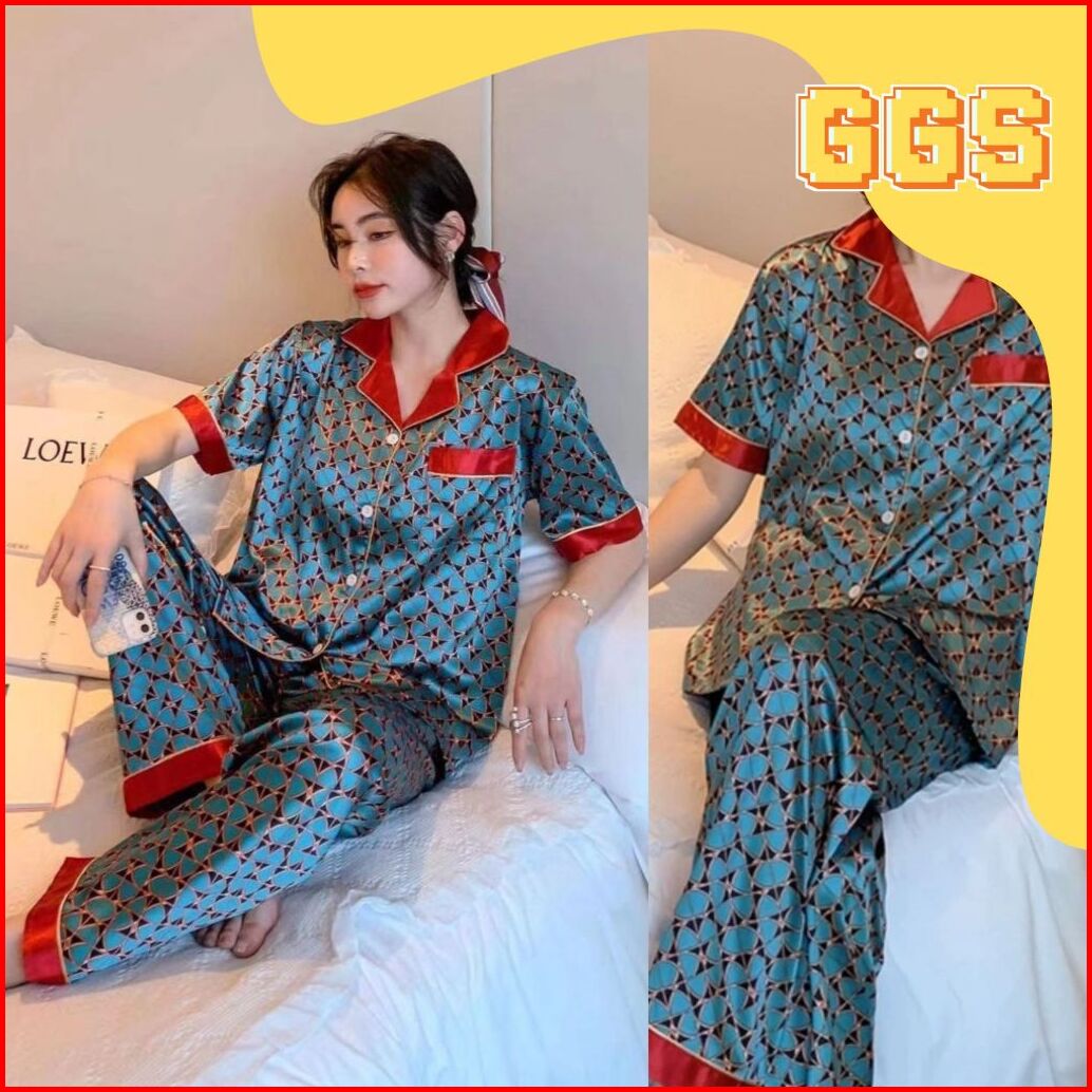Ggs Baju Tidur Wanita Piyama Satin Setelan Kemeja Lengan Pendek Celana Panjang Busui Friendly Style Korea Mewah Dewasa R