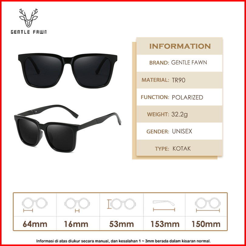 Gentle Fawn Kacamata Hitam Sunglases Polarized Hitam Anti Silau Bahan Tr90 Bentuk Kotak Trendy Fashion Pria Dan Wanita 1