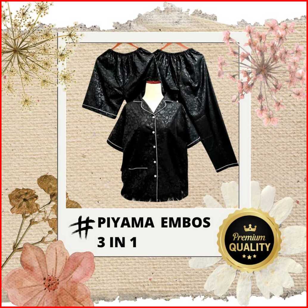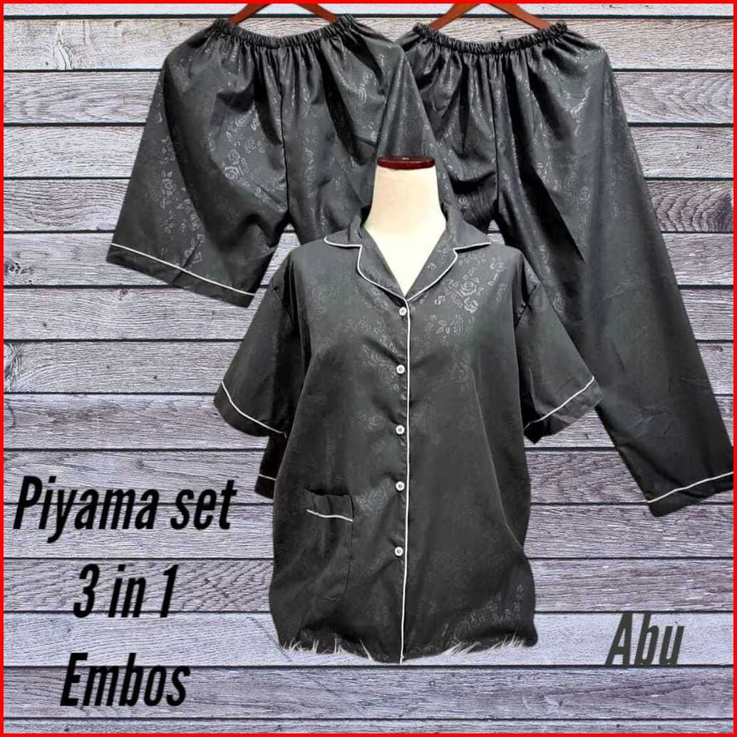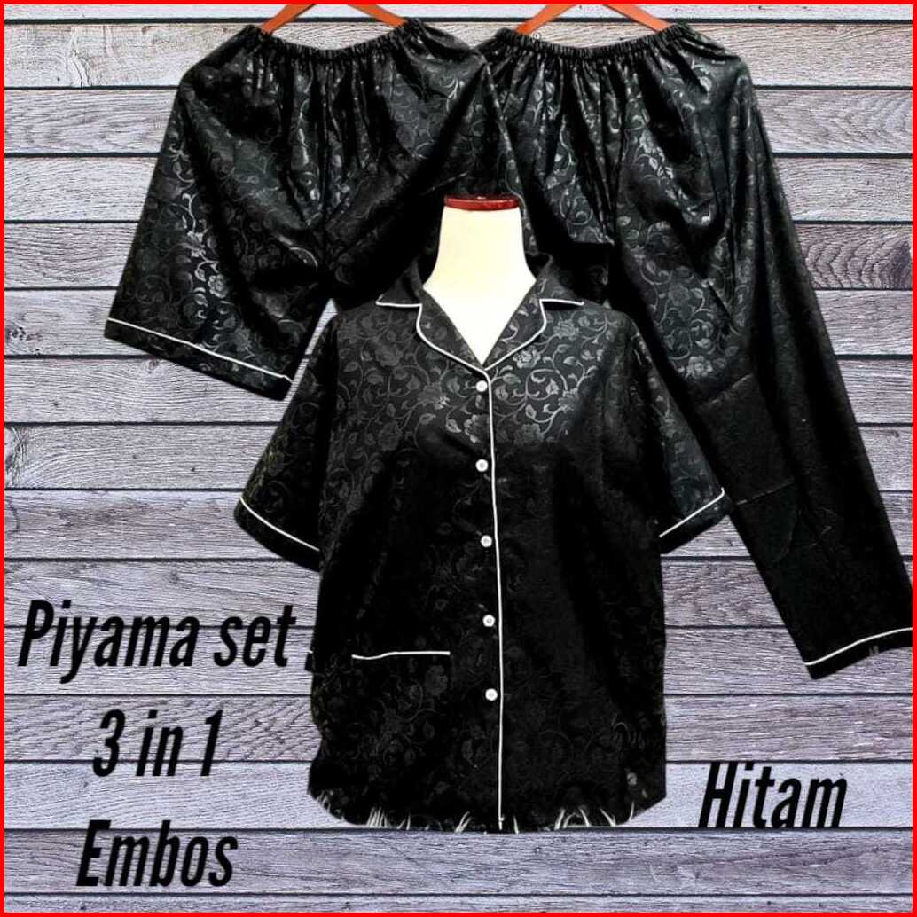 Baju Tidur Wanita Dewasa Setelan Piyama Embos 3 In 1 Ukuran M L Xl Xxl