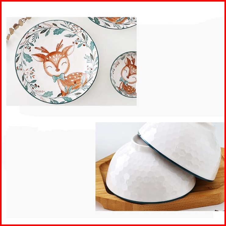 Forest Elk Souvenir Piring Dan Mangkok Jepang Set Hand Painted Japanese Plate And Bowl Set Wedding Gift Box Hampers Kado