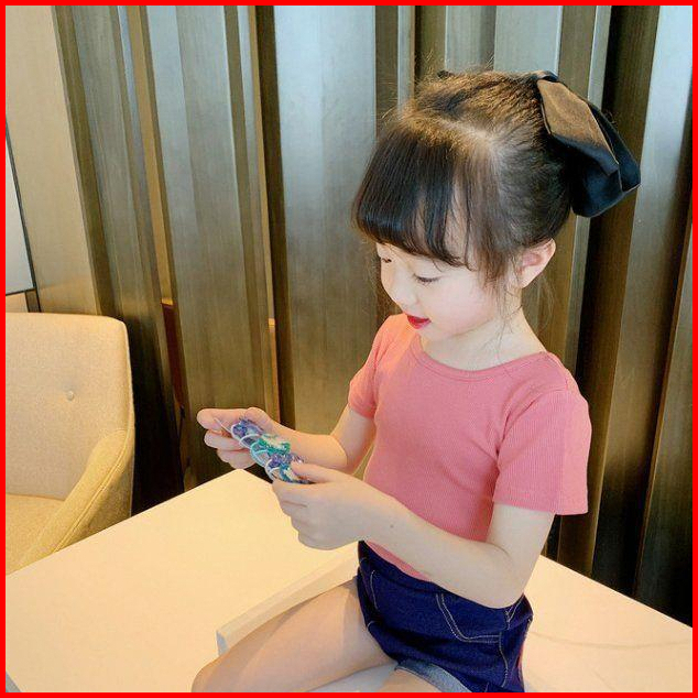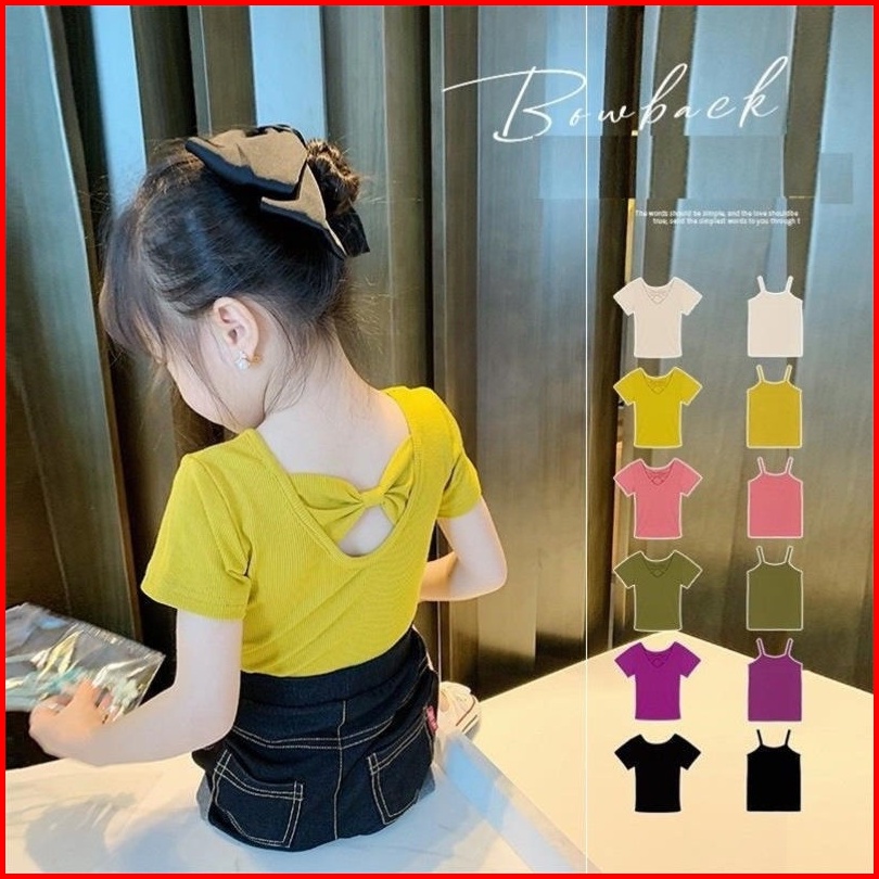 Kd11-kaos Tshirt Atasan Anak Cewek Perempuan Lengan Pendek Polos Back Ribbon