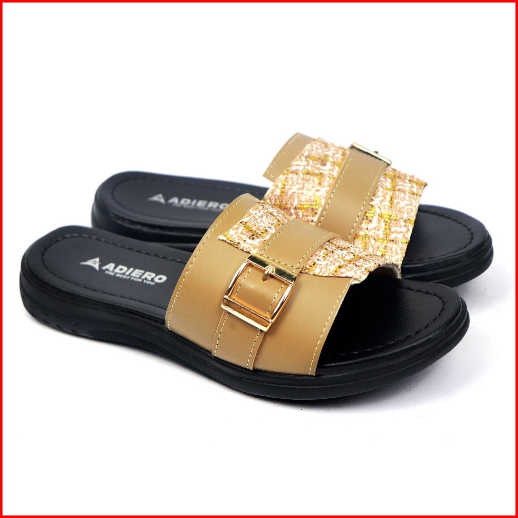 Adiero Sandal Wanita Kekinian Slop Rajut Hak Wedges Cewek