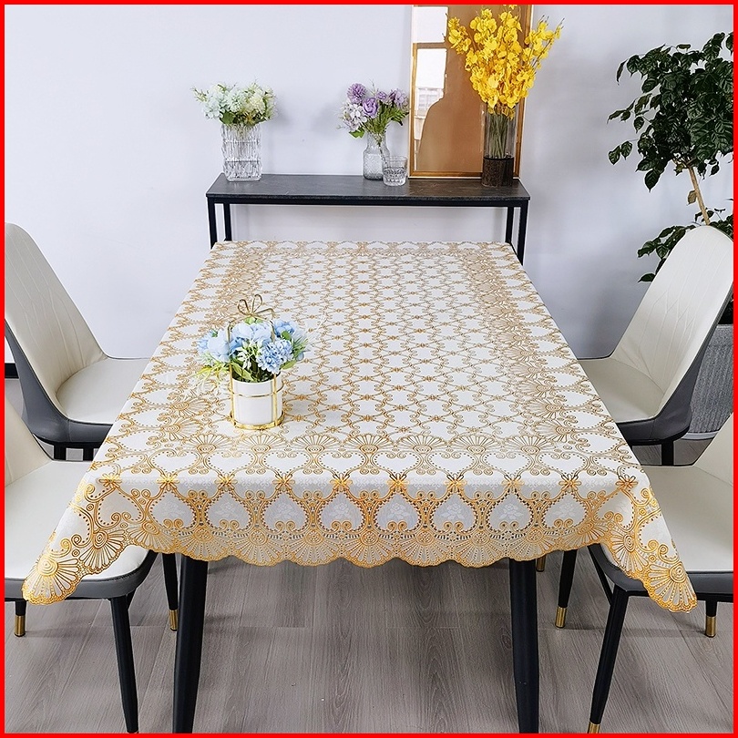 Taplak Meja Makan Ruang Tamu Ukuran 110x160cm Motif Bunga Golden Bahan Pvc Anti Air Minyak Mewah Modern Perlengkapan Dek