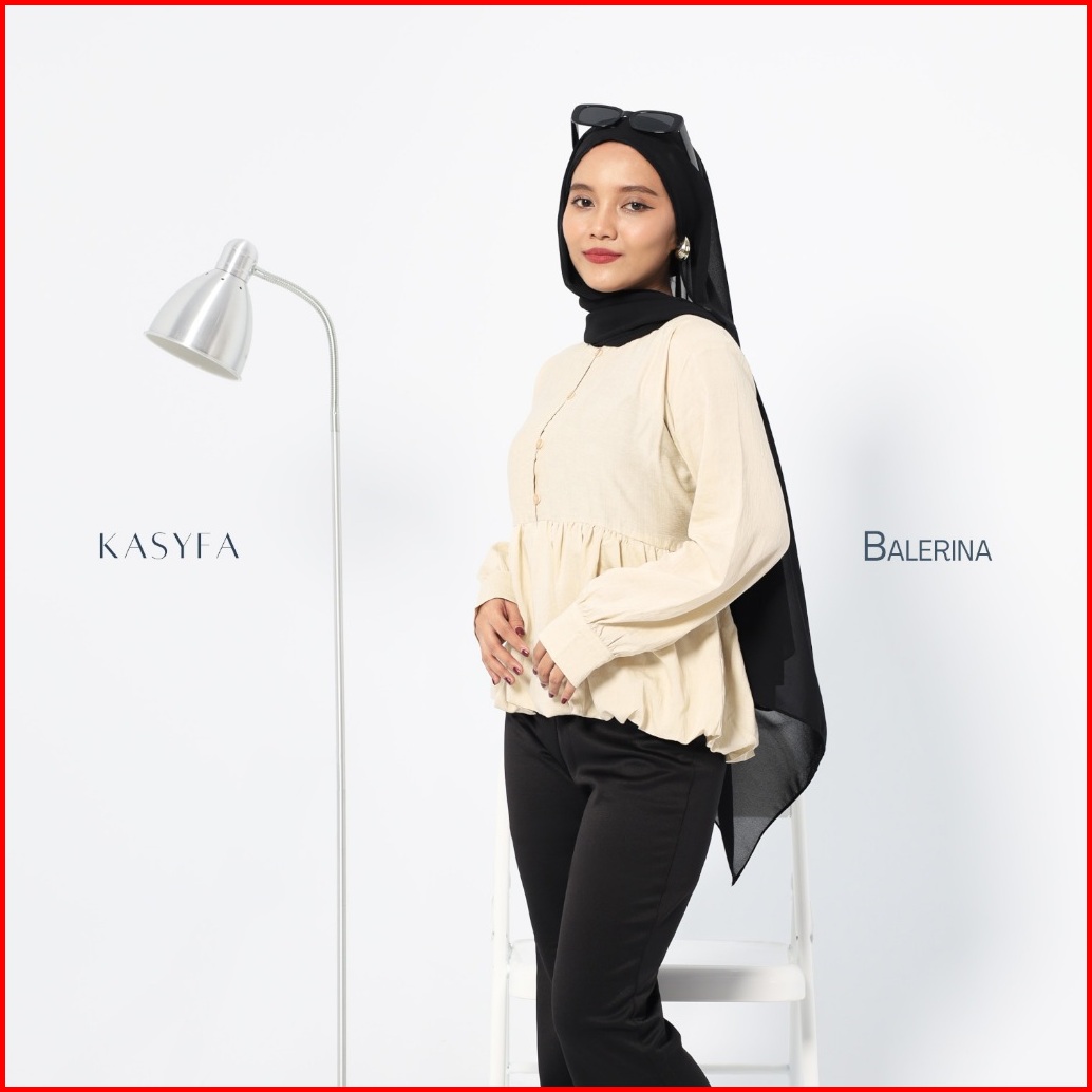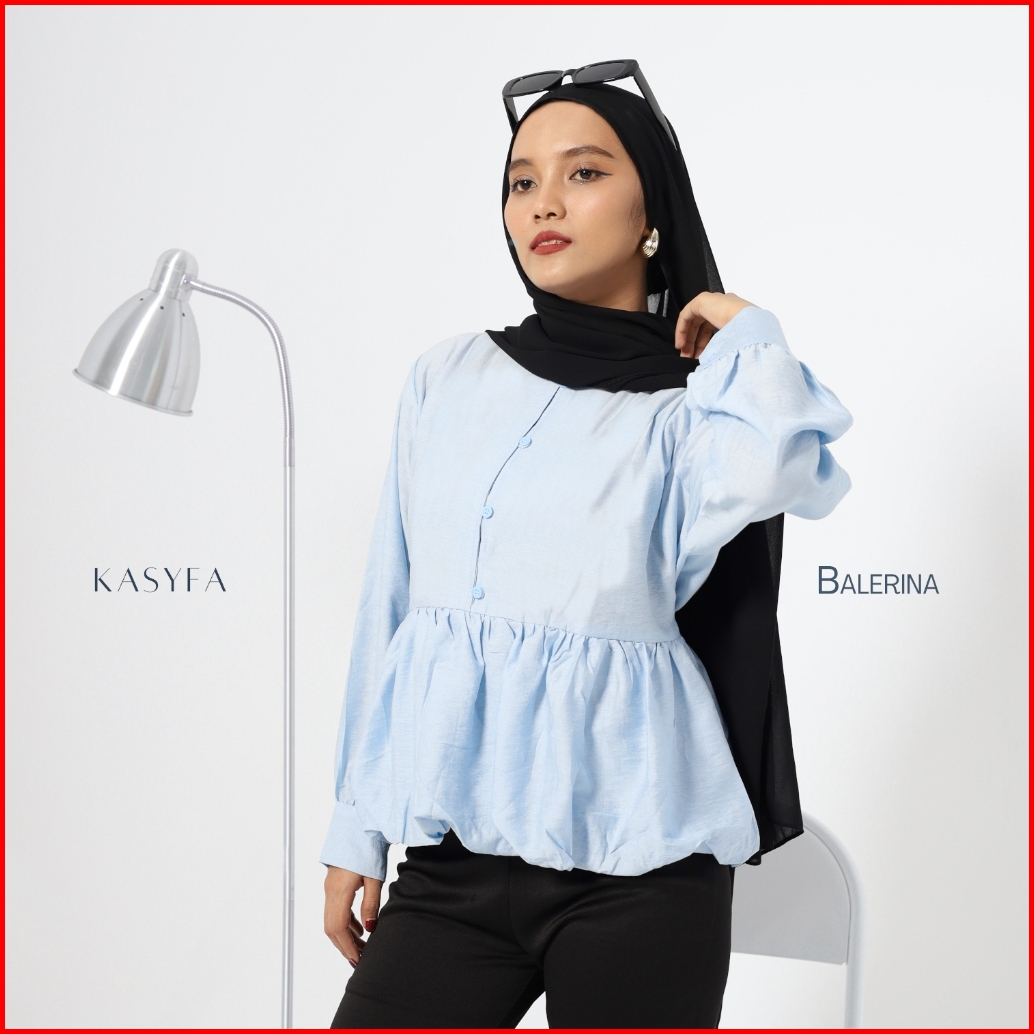 Balerina Blouse Balon Wanita Korean Style Atasan Fitted Polo Linen