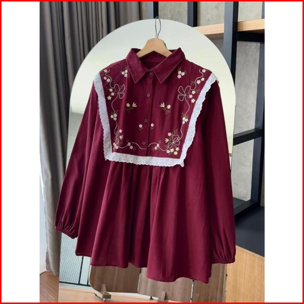 Lana Atasan Kemeja Wanita Bordir Bunga Variasi Renda Busui Friendly