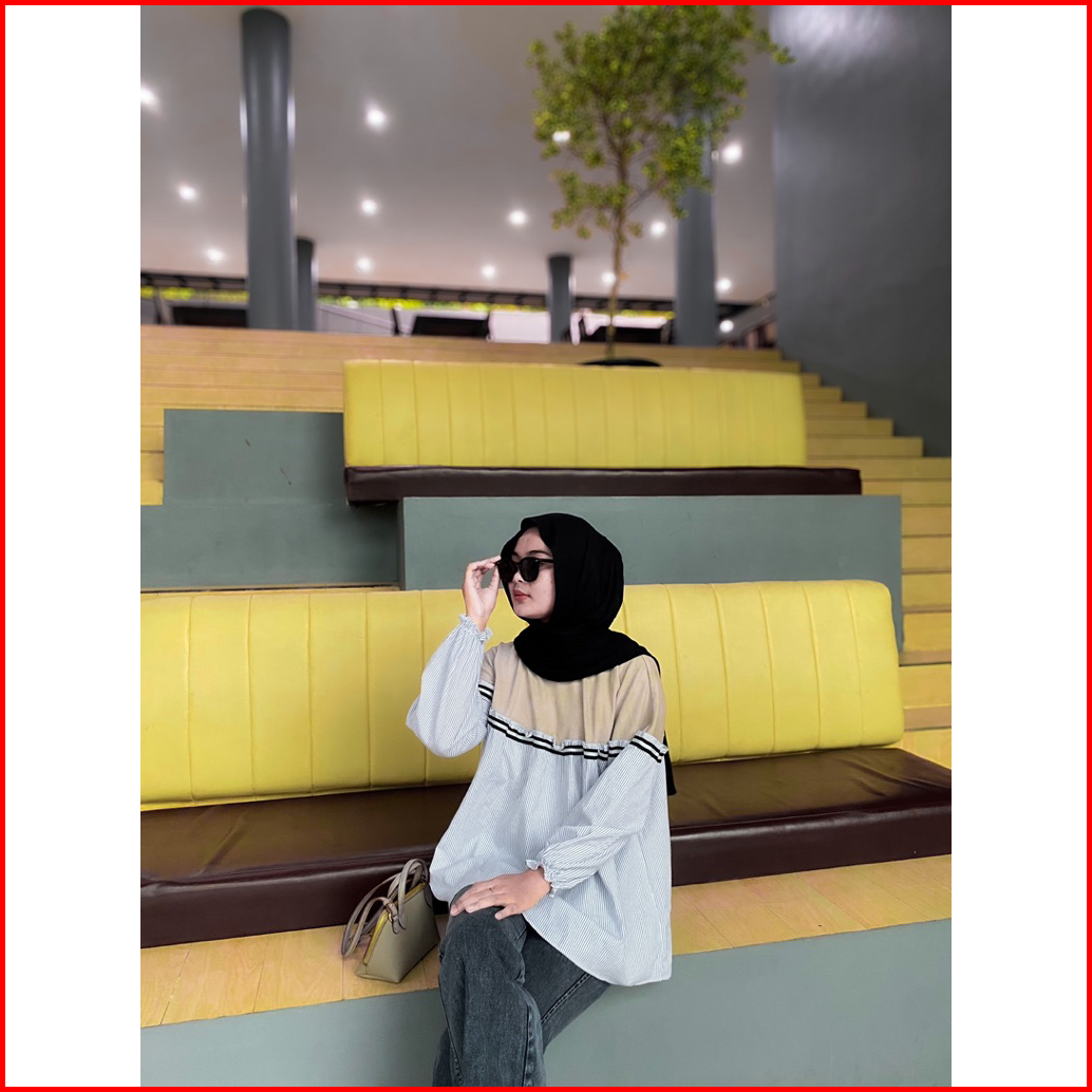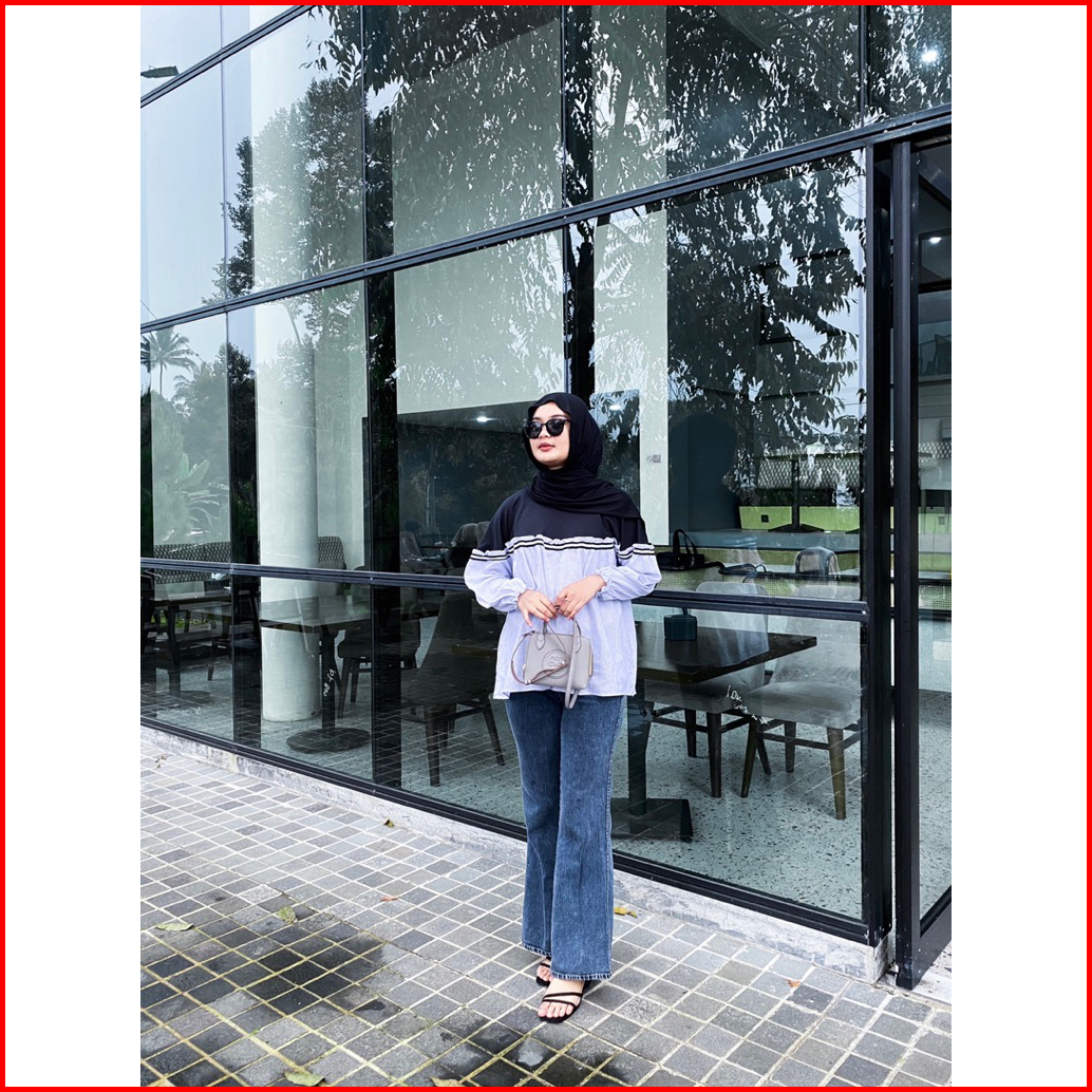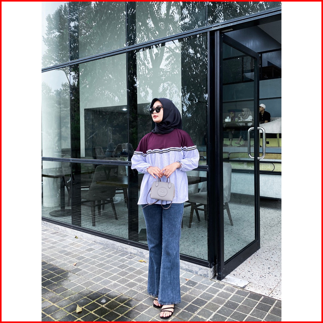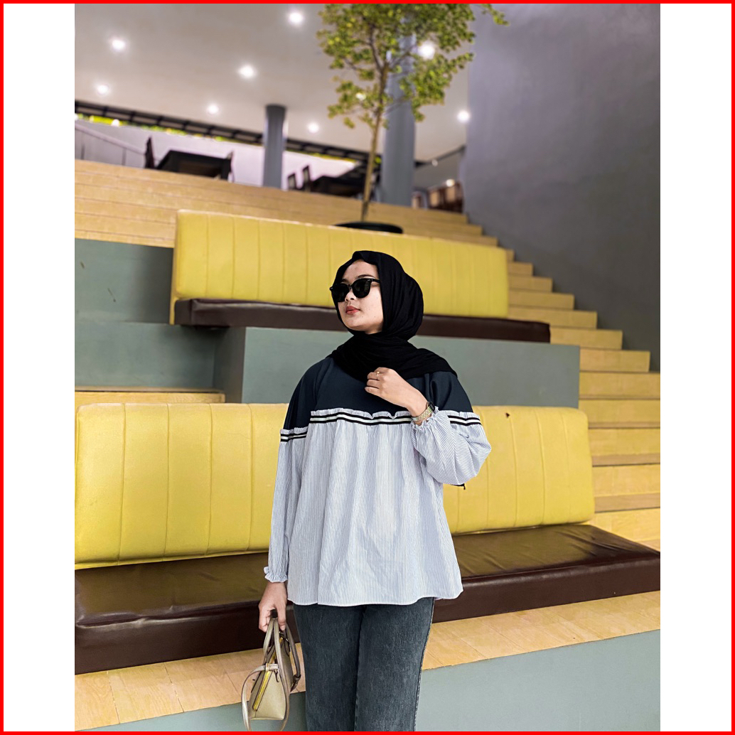 Naya Blouse Katun Salur Mix Knit Atasan Wanita Stripe