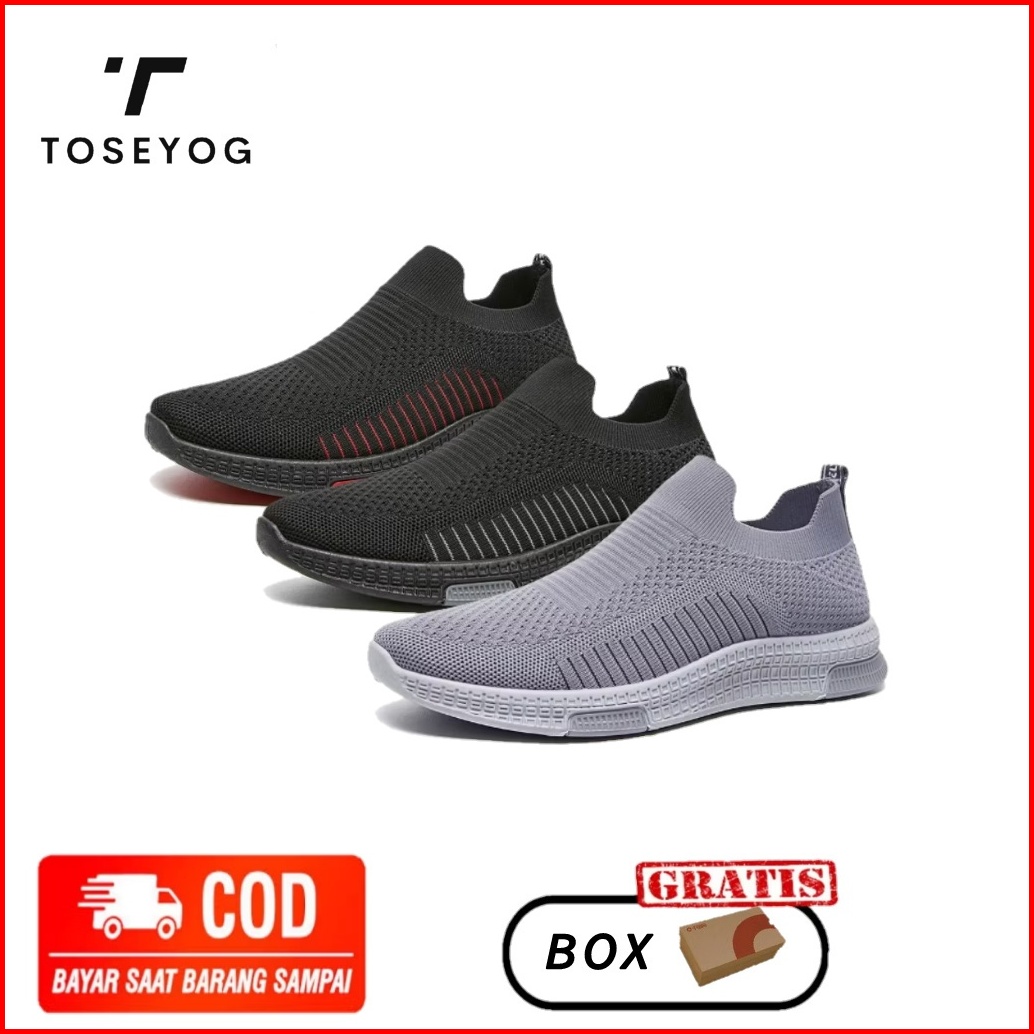 Toseyog 004 Sepatu Kanvas Rajut Pria Laceless Karet -