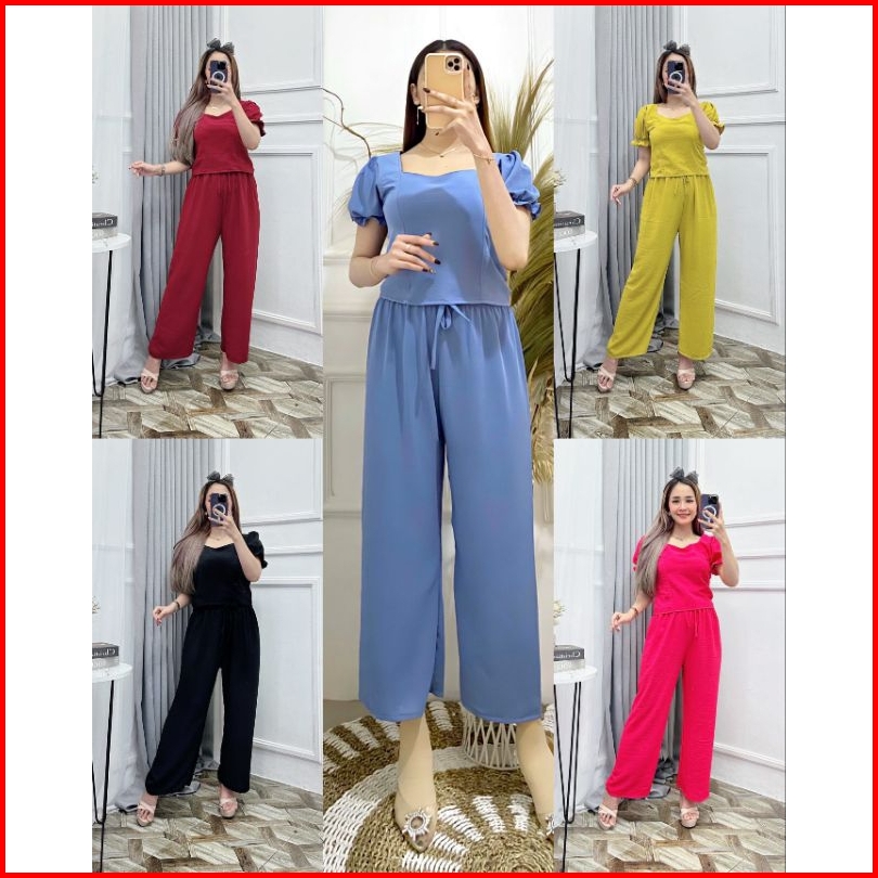 Clara One Set Kekinian Moana Kulot Murah Bahan Crinkle Airflow Populer