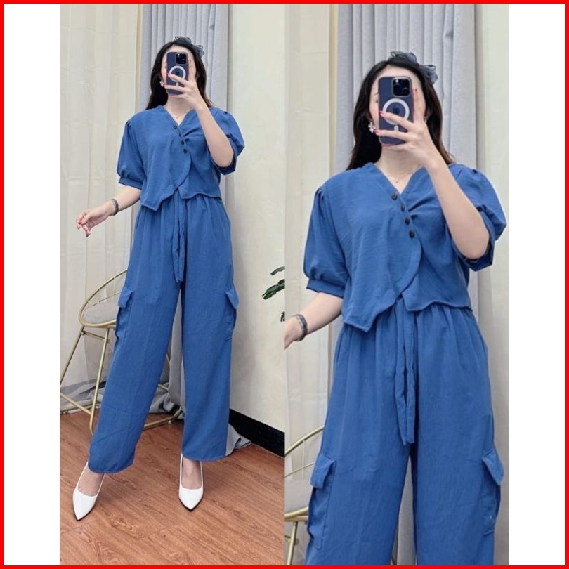 One Set Crop Top Terbaru Setelan Wanita Viral Setelan Wanita Kekinian One Set Cargo Terbaru Setelan Crop Murah