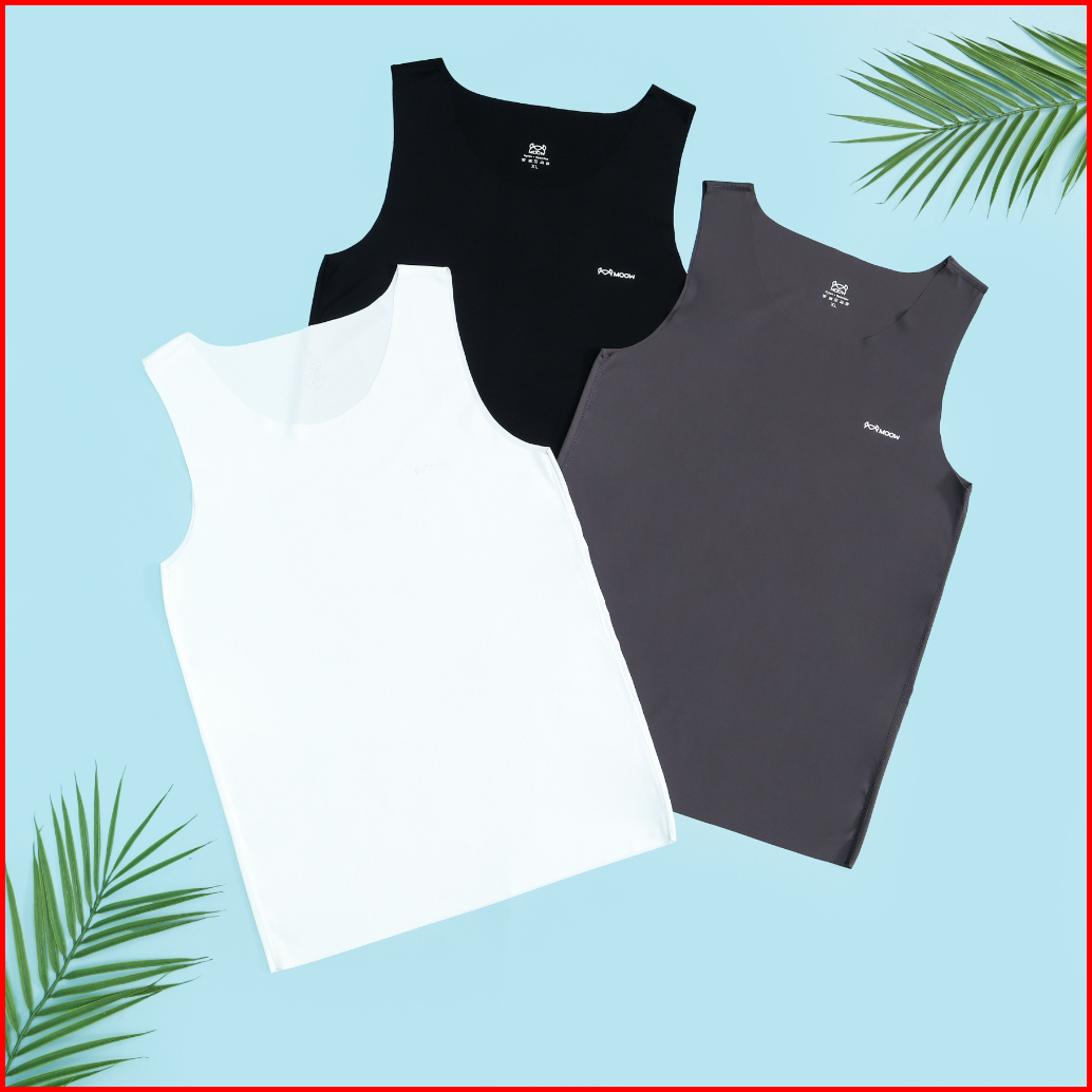 Larunshow X Moow Kaos Singlet Baju Dalaman Pria Ice Silk Seamless Premium Adem Lembut Elastis Sp53