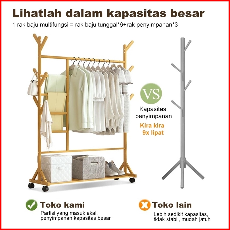 E-tlfe Stand Hanger Rak Baju Gantung Kayu Gantungan Baju Berdiri Stand Hanger Rak Baju Minimalis