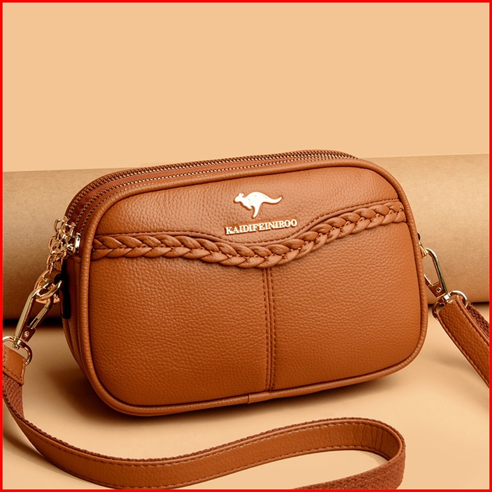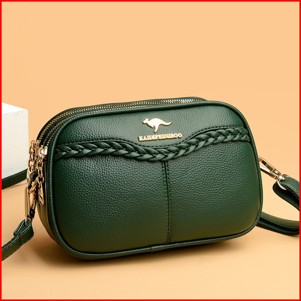 Alinesia - Tas Selempang Wanita 3 Ruang Bahan Kulit Pu Kepang Warna Hitam Cokelat Tan Hijau Merah Tas Kecil Wanita Untuk