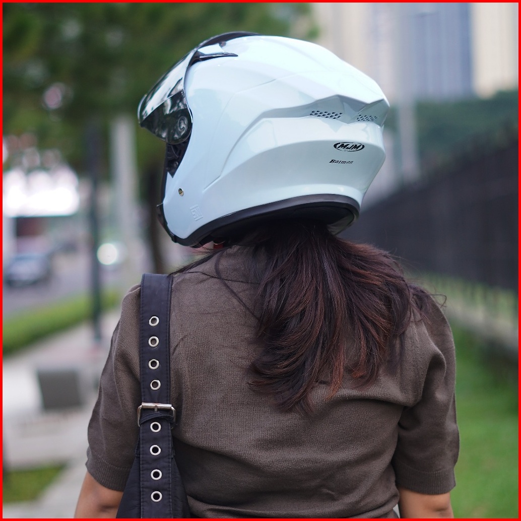 Helm Half Face Mjm Batman Grey Glosy Kaca Hitam Sni