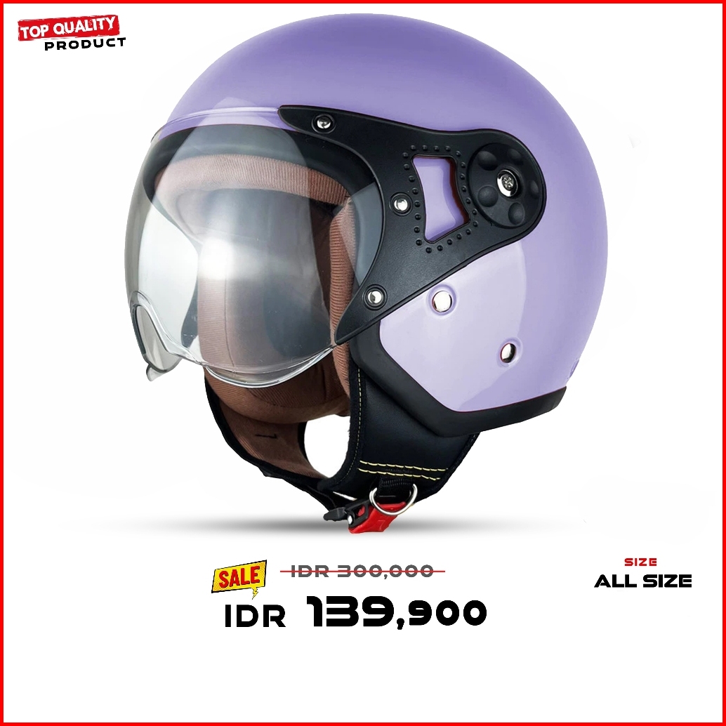Helm Bogo Hijab Mla Grey Glosy Retro Dewasa Kaca Pilot Helm Motor Sni Stylish Wanita
