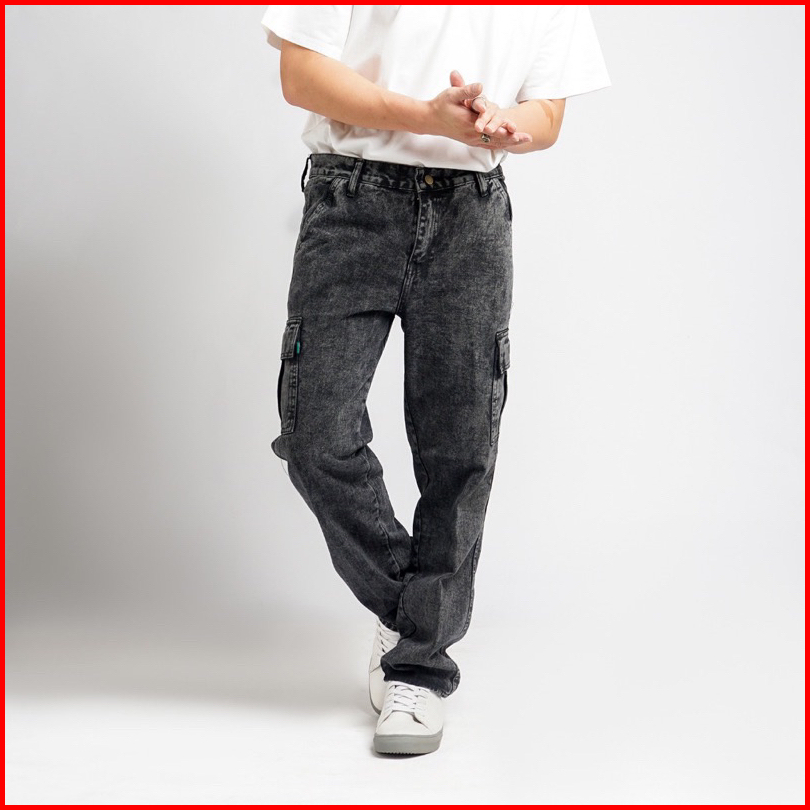 Celana Cargo Panjang Jeans Reguler Pria Murah Premium Size 27-38 Cargo Loose Fit Reguler