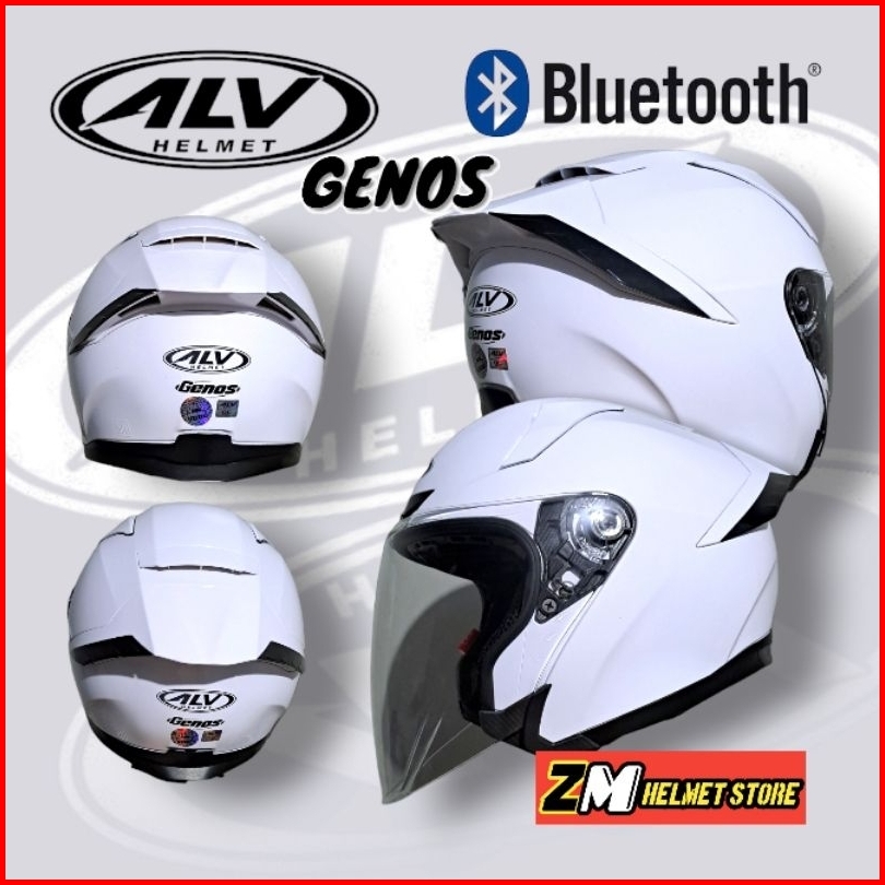 Helm Alv Genos Solid White Half Face Kekinian Sni Dapat Satu Set Dengan Intercome