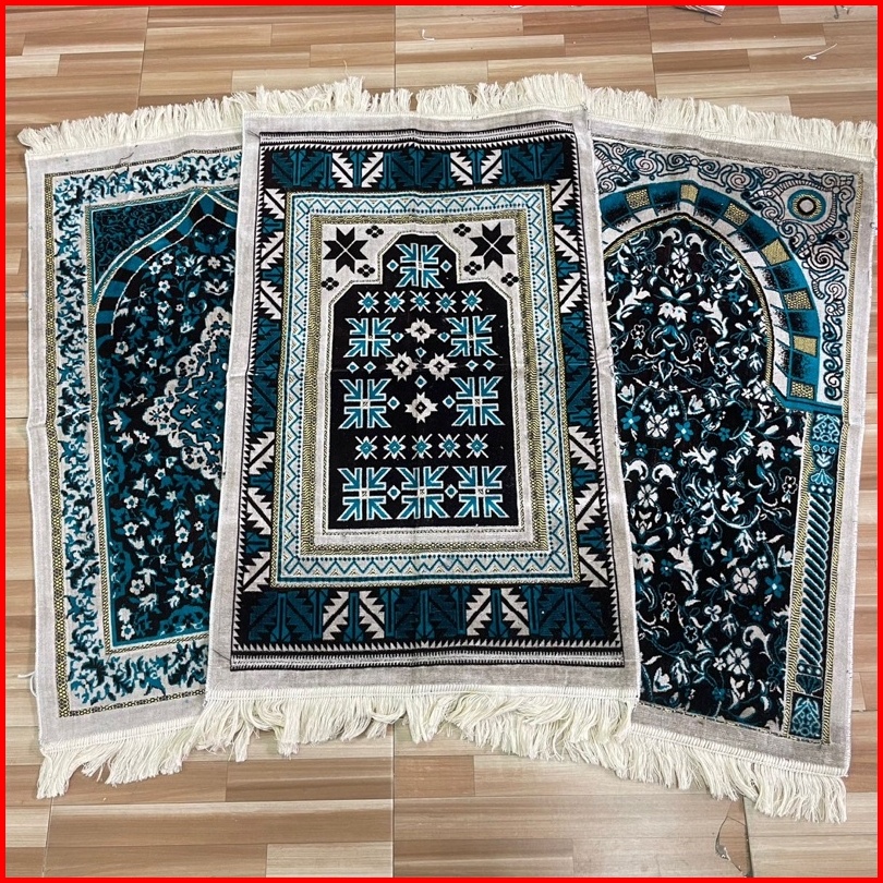 Sajadah Bludru Turki Motif Karpet Timur Tengah Cream