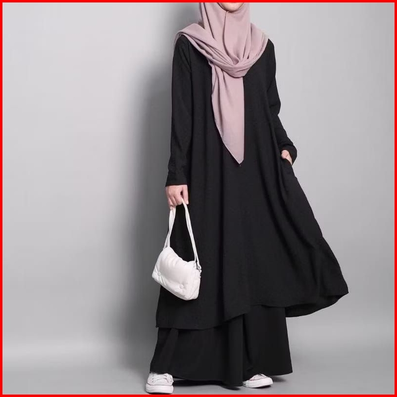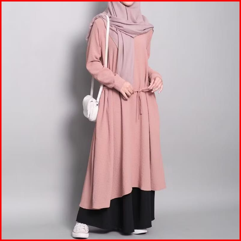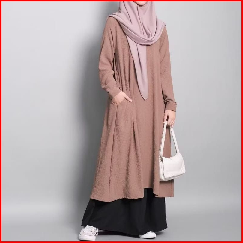 Aisha Midi Dress Tunik Simple Bahan Crincle Airflow Homedress Fashion Muslim Remaja Terbaru