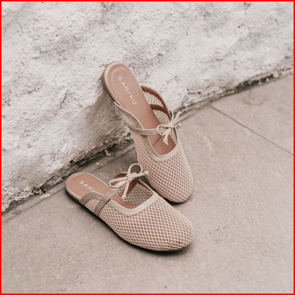 Sahiku-kiara Mesh Flat Mules Wanita Selop Balet Fishnet Sandal Coquette Jaring Net Korean Style