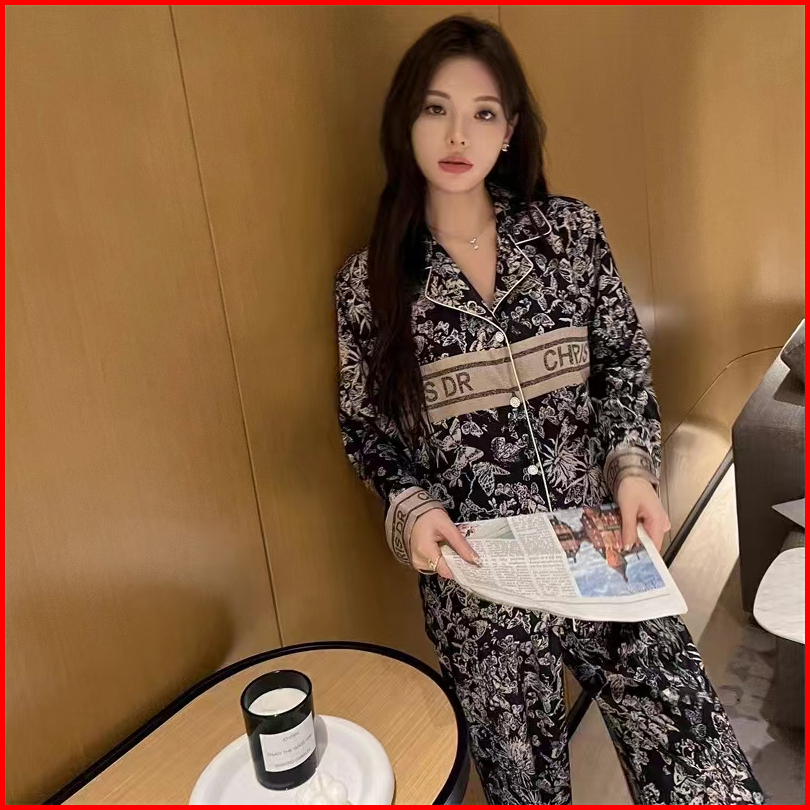 2025 Piyama Baru Wanita Celana Panjang Lengan Panjang Kupu-kupu Hitam Dan Bisa Dipakai Di Luar Pakaian Rumah