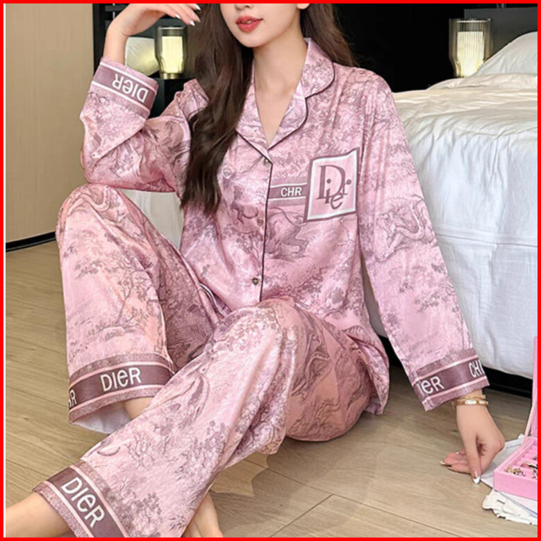 2025 Lukisan Tinta Baru Baju Tidur Lengan Panjang Pakaian Tidur Wanita Sutra Es