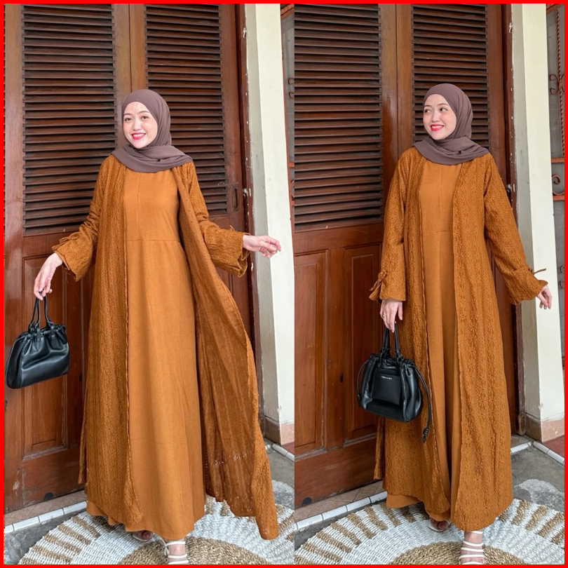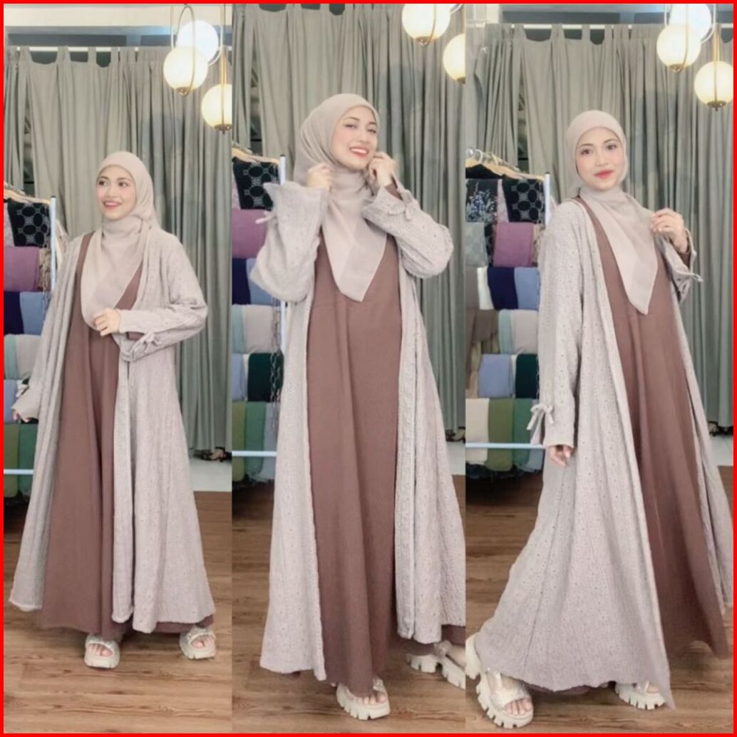 Joley Cloth - Nayyira 2 In 1 Baju Gamis Outer Dress Lebaran 2025 Muslimah Wanita Gamis Setelan Lembut Resleting Wudhu Pa
