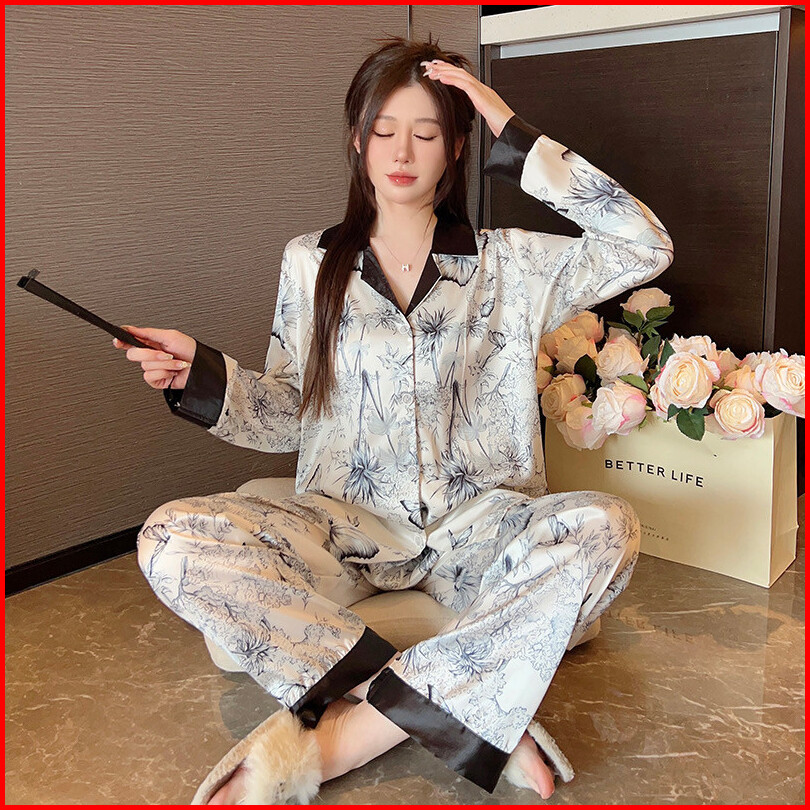2025 Pakaian Rumah Lukisan Tinta Piyama Kardigan Wanita Korea Baru