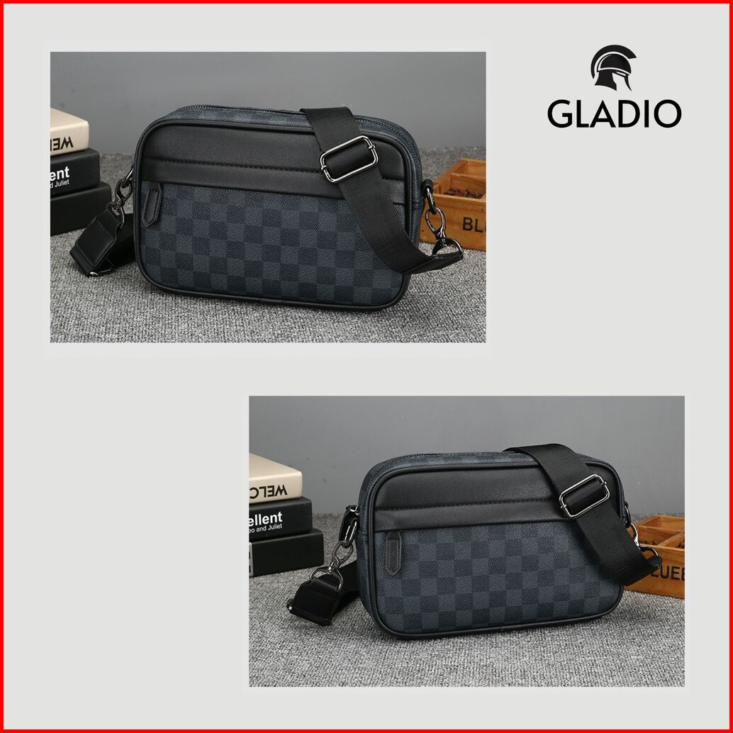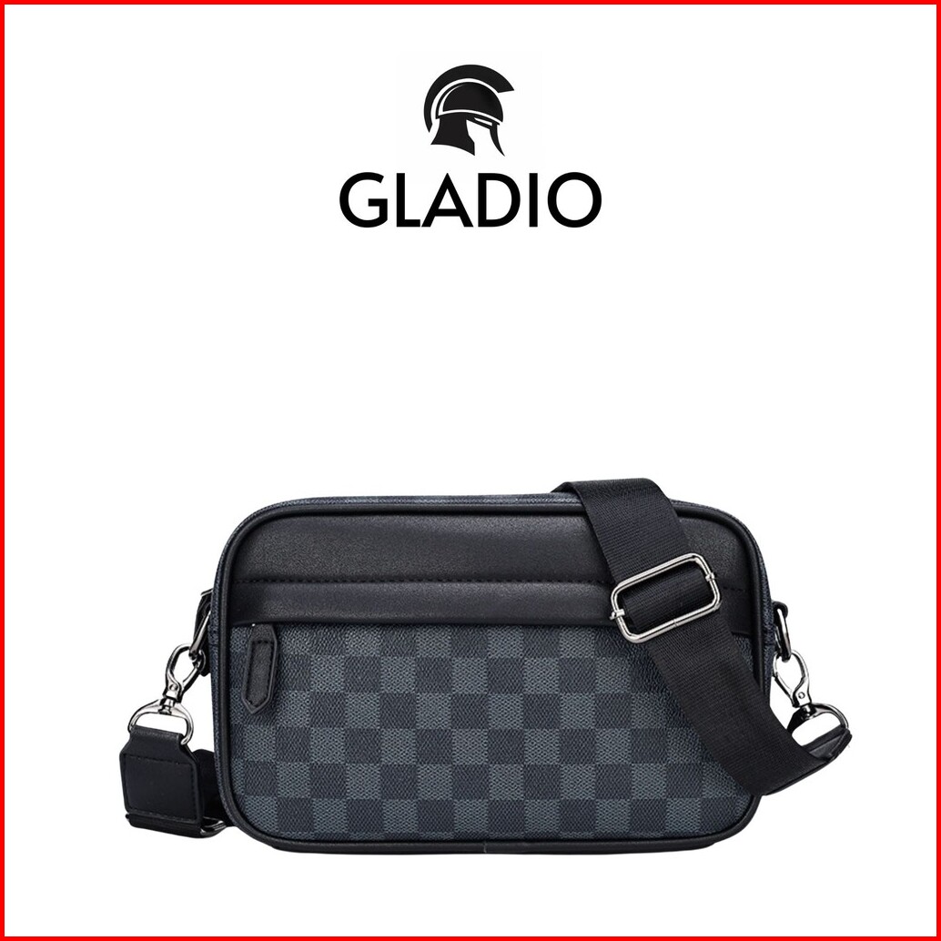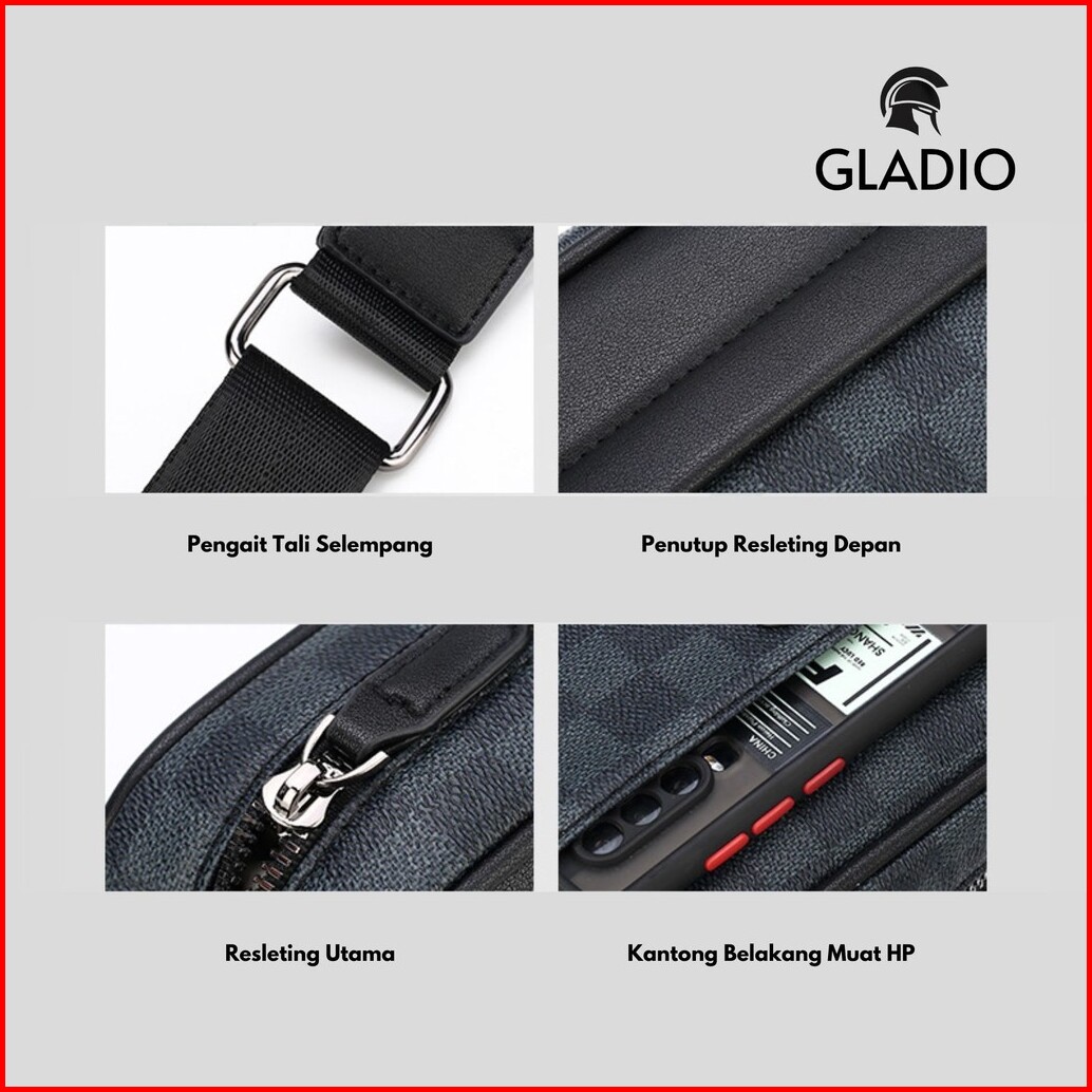 Gladio Tas Selempang Pria Ageru Hitam Kulit Motif Kekinian Kasual Sling Bag Terbaru Branded Gld016b5