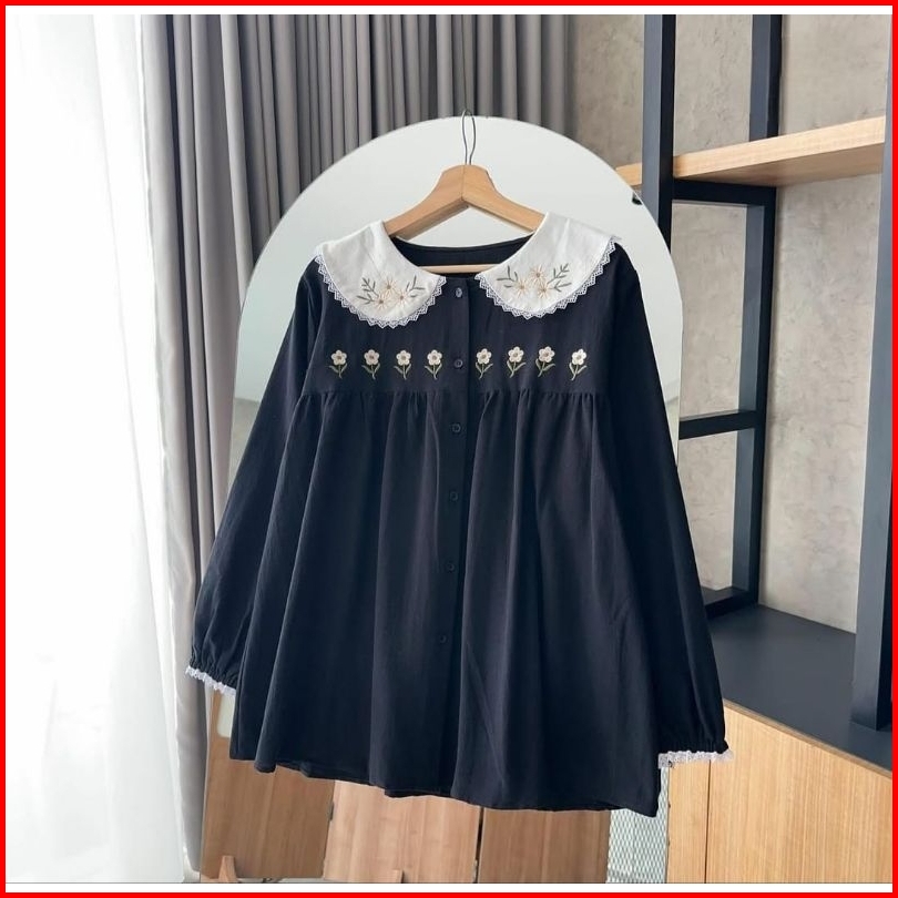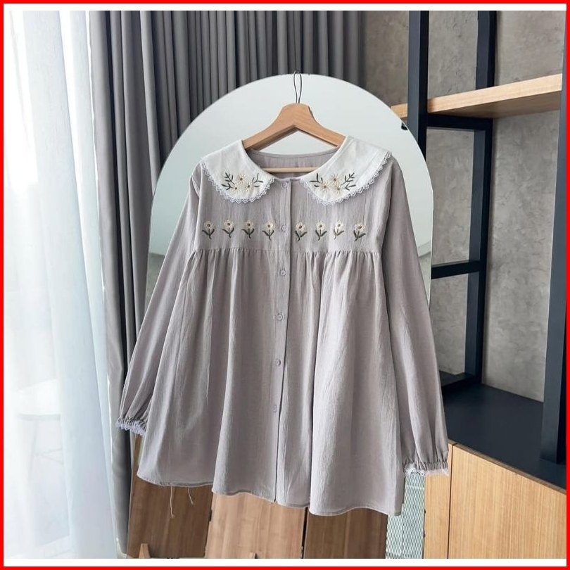 Ghavi Blouse Bordir Renda Rayon Twill Bunga-bunga