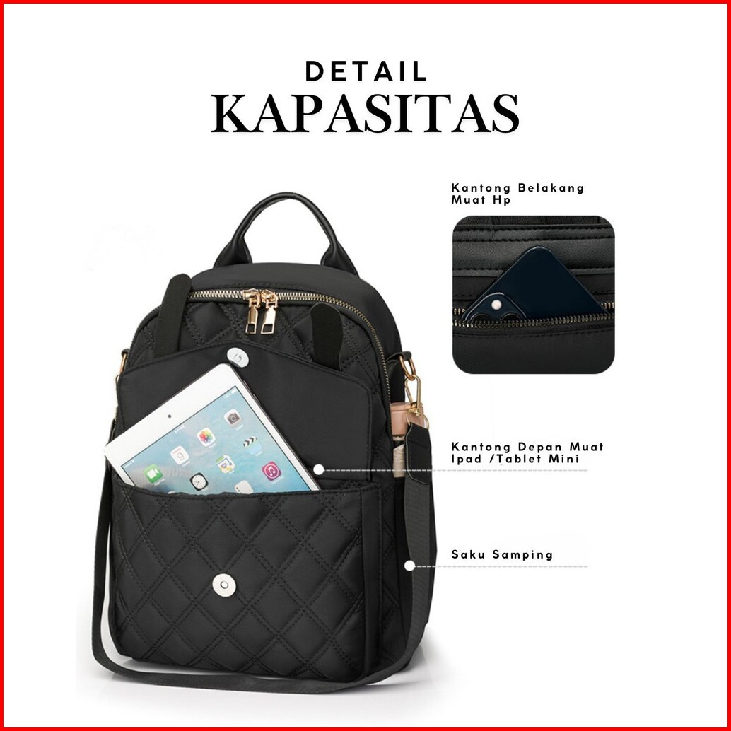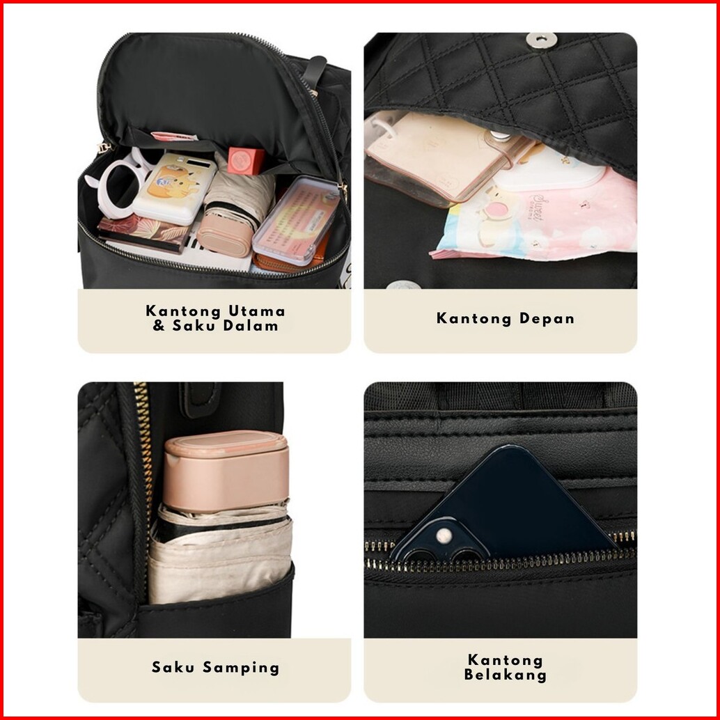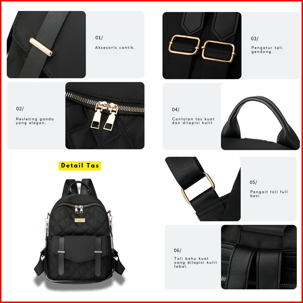 Hanami Tas Ransel Danura Hitam Anti Air Branded Premium Backpack Terbaru Mewah Simple Ta1063b5