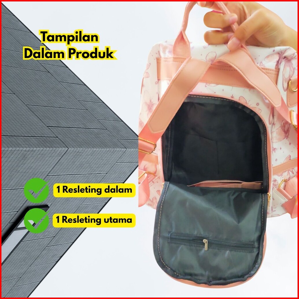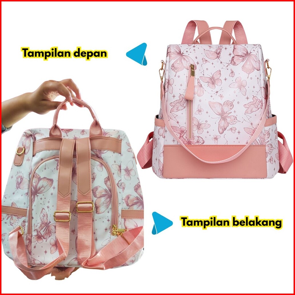 Hanami Tas Ransel Youko Pink Wanita Sekolah Premium Kupu Cantik Kupu Kuliah Elegan Ta1137p3 Motif