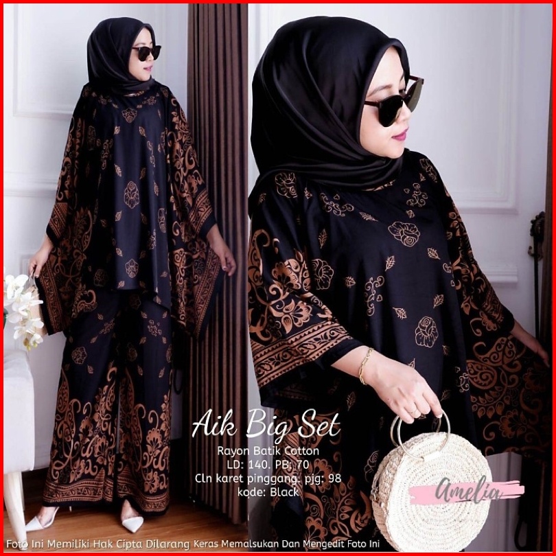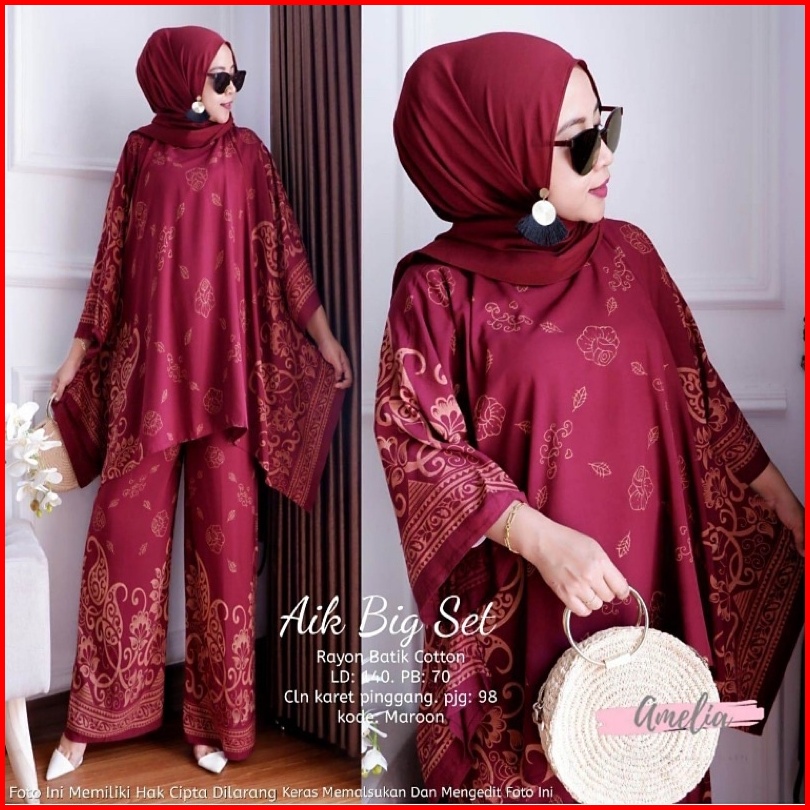 Aik Set Waka Ori Premium Setelan Rayon Waka Waka One Set Jumbo Kulot Big Size Tidak Nerawang