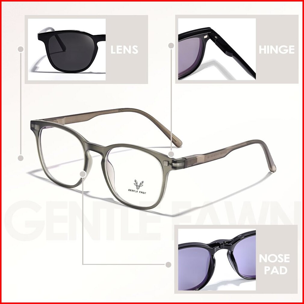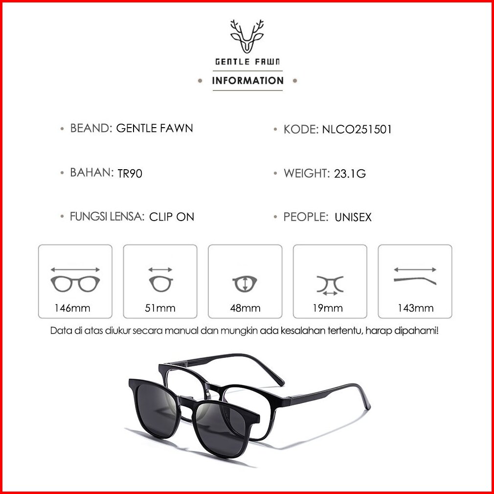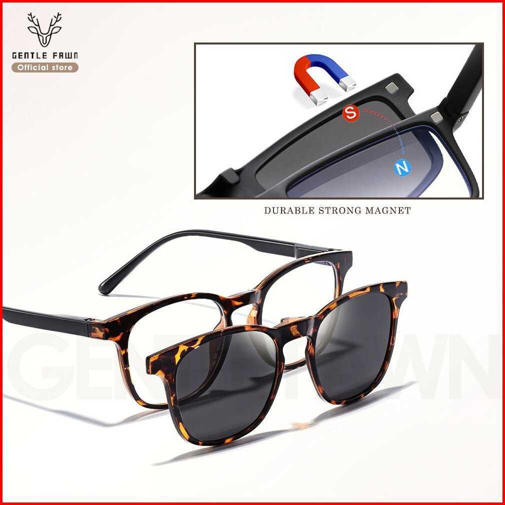 Gentle Fawn Kacamata Clip On 2in1 Free Clip Lens Polarized Bentuk Kotak Bahan Tr90 Ringan Bisa Minus Trendy Style 251501