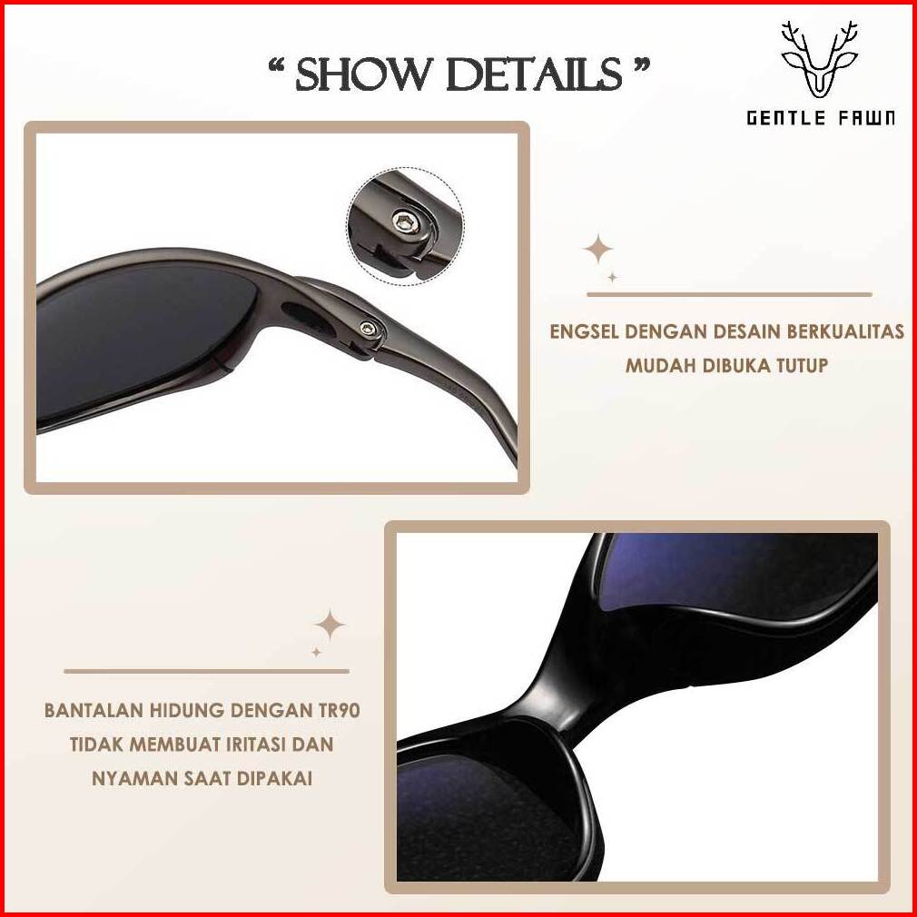 Gentle Fawn Kacamata Sunglasses Anti Silau Sinar Uv Model Sporty Bahan Tr90 Fashion Olahraga Wanita Pria Julit