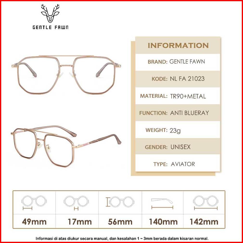 Gentle Fawn Kacamata Antiradiasi Blueray Style Aviator Bahan Tr90 Metal Kuat Kokoh Bisa Minus Fashion Pria Wanita Trendy